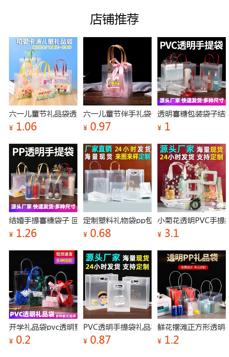 생일 선물 가방 어린이 날 유치원 선물 포장 가방 기념품 가방 PVC 투명 핸드백스토어 가기