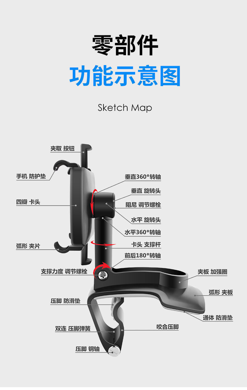 국경 간 전자 상거래 다기능 자동차 브래킷 스냅 온 로터리 계기판 백미러 내비게이션 휴대 전화 범용