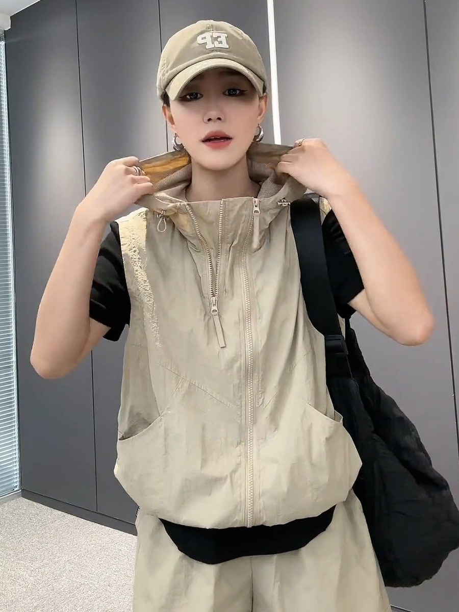 얇은 조끼 봄 여름 여성용 코트 2024 후드 슬림핏 조끼 다용도 베스트 자외선 차단 의류 여성용 가벼운 자외선 차단복스토어 가기