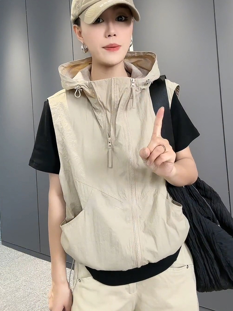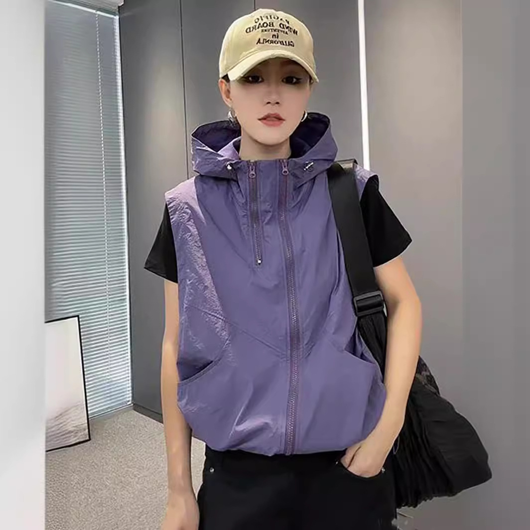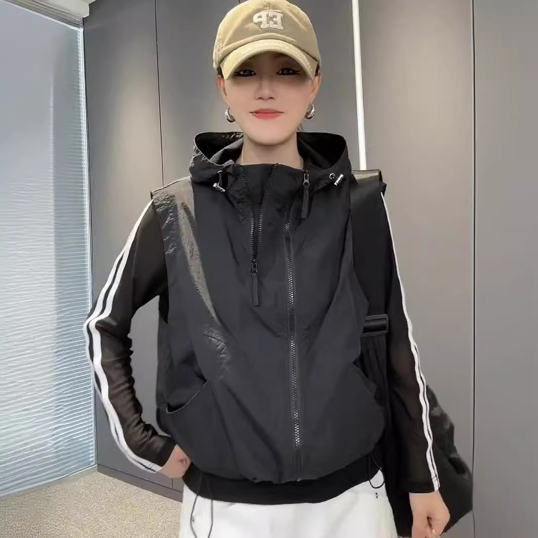 얇은 조끼 봄 여름 여성용 코트 2024 후드 슬림핏 조끼 다용도 베스트 자외선 차단 의류 여성용 가벼운 자외선 차단복