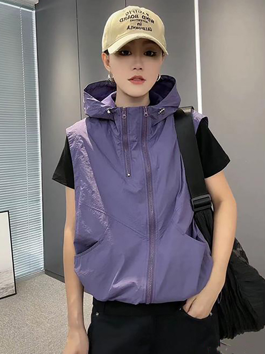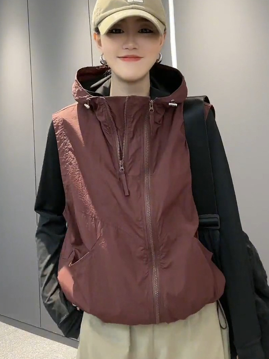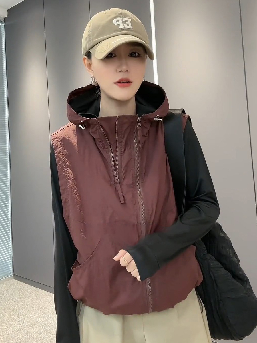얇은 조끼 봄 여름 여성용 코트 2024 후드 슬림핏 조끼 다용도 베스트 자외선 차단 의류 여성용 가벼운 자외선 차단복