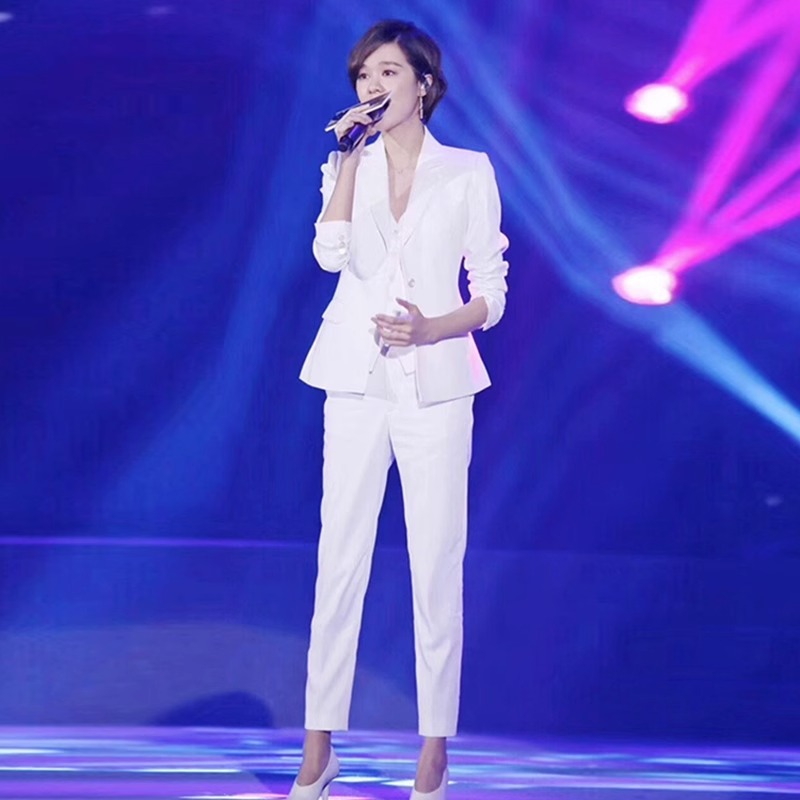 화이트 하이 엔드 전문 기질 세트 세트 여성용 하이 엔드 코트 여신 스타일 양복 조끼 바지 3 피스 세트스토어 가기