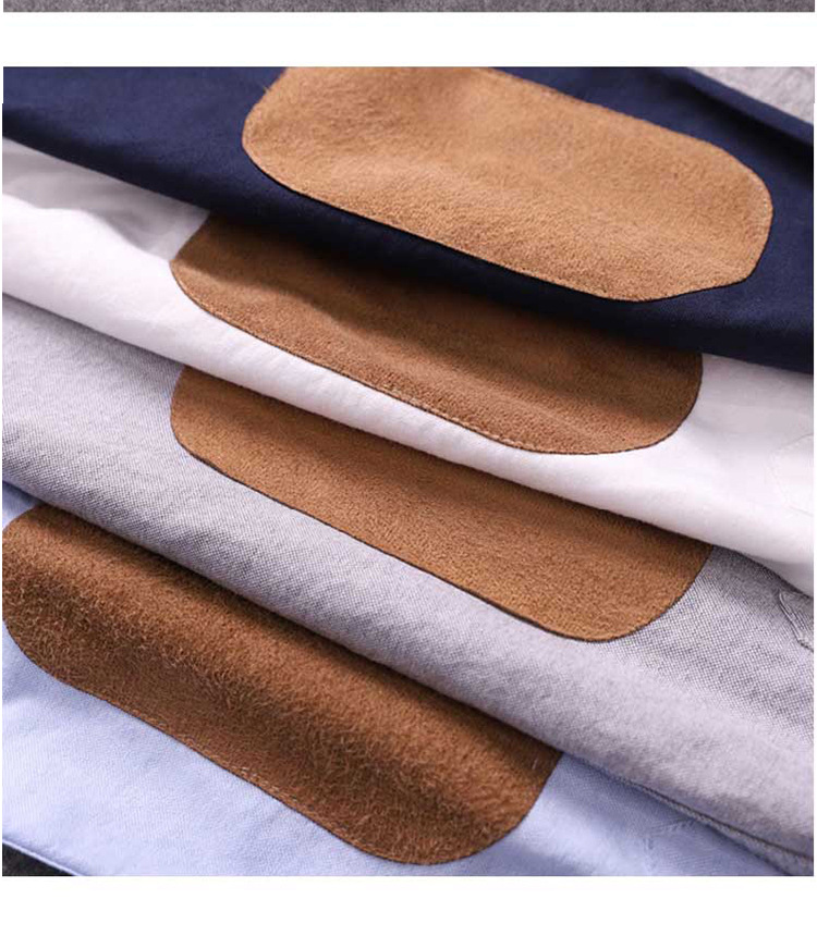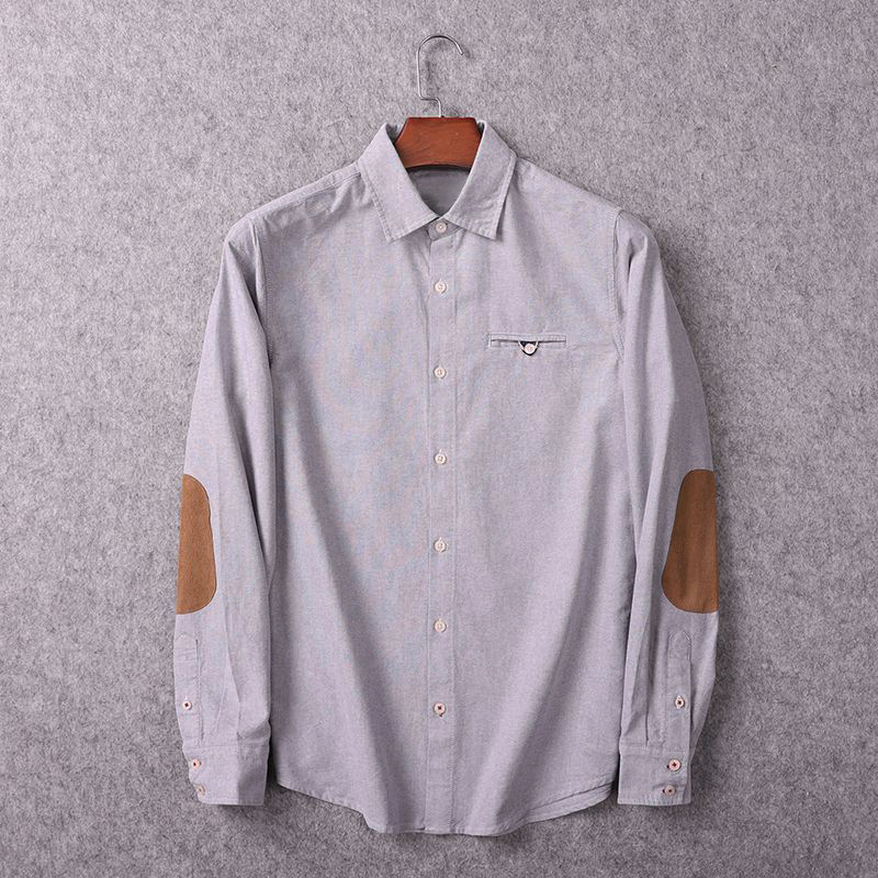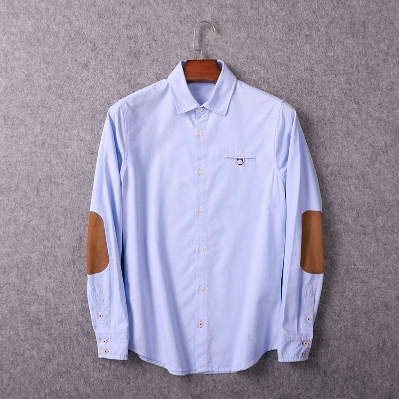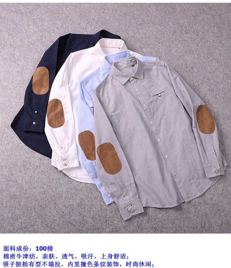 봄과 여름 남성면 긴팔 셔츠 한국 팔꿈치 패치 캐주얼 셔츠 젊고 중년 일본 셔츠 남성복