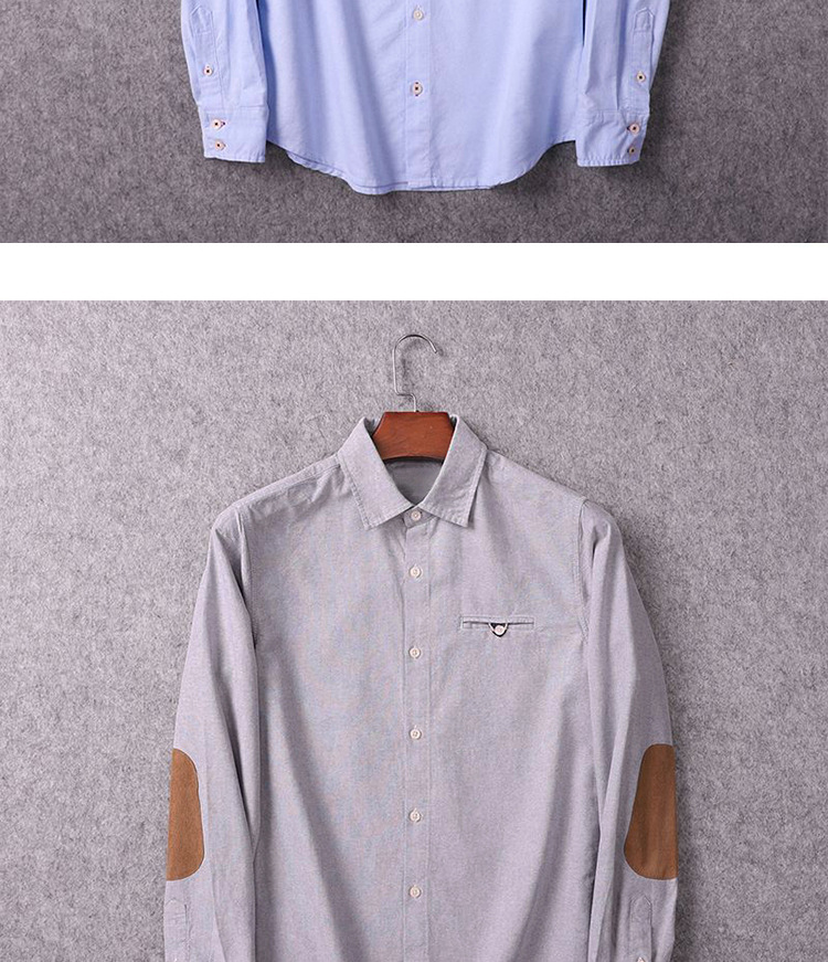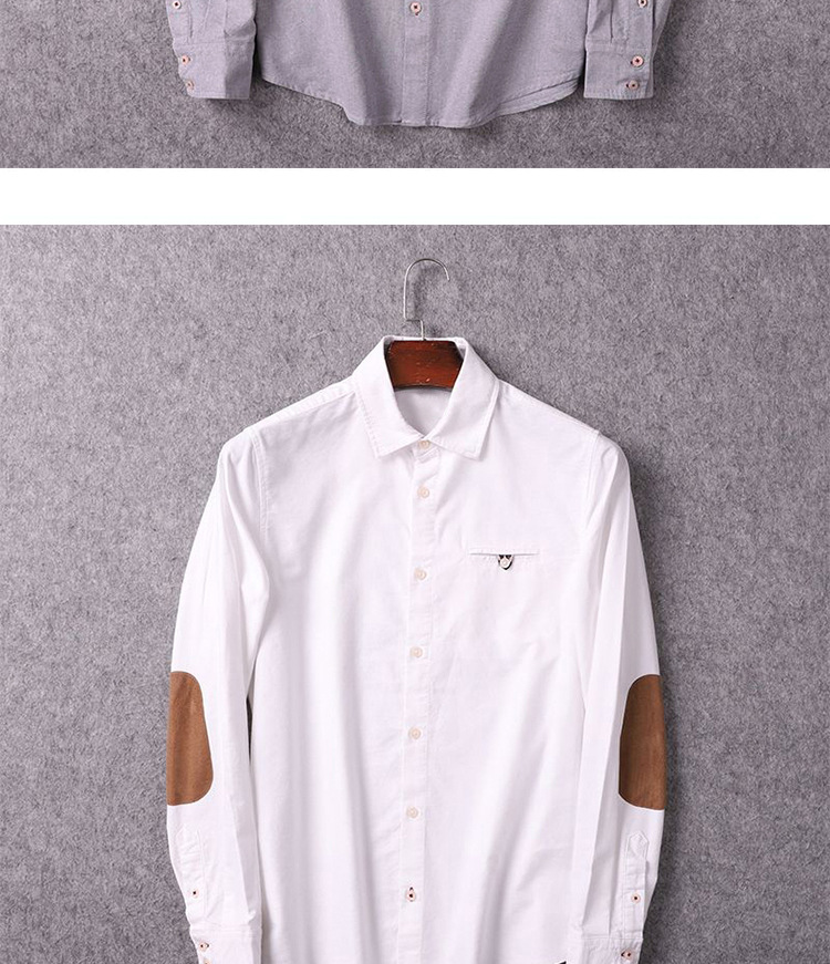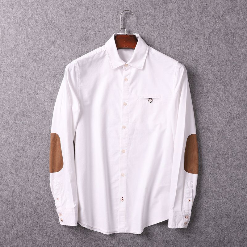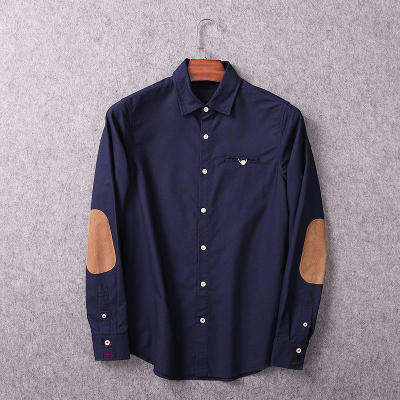 봄과 여름 남성면 긴팔 셔츠 한국 팔꿈치 패치 캐주얼 셔츠 젊고 중년 일본 셔츠 남성복스토어 가기