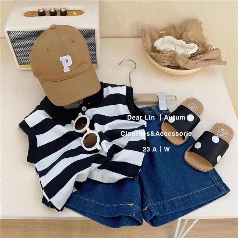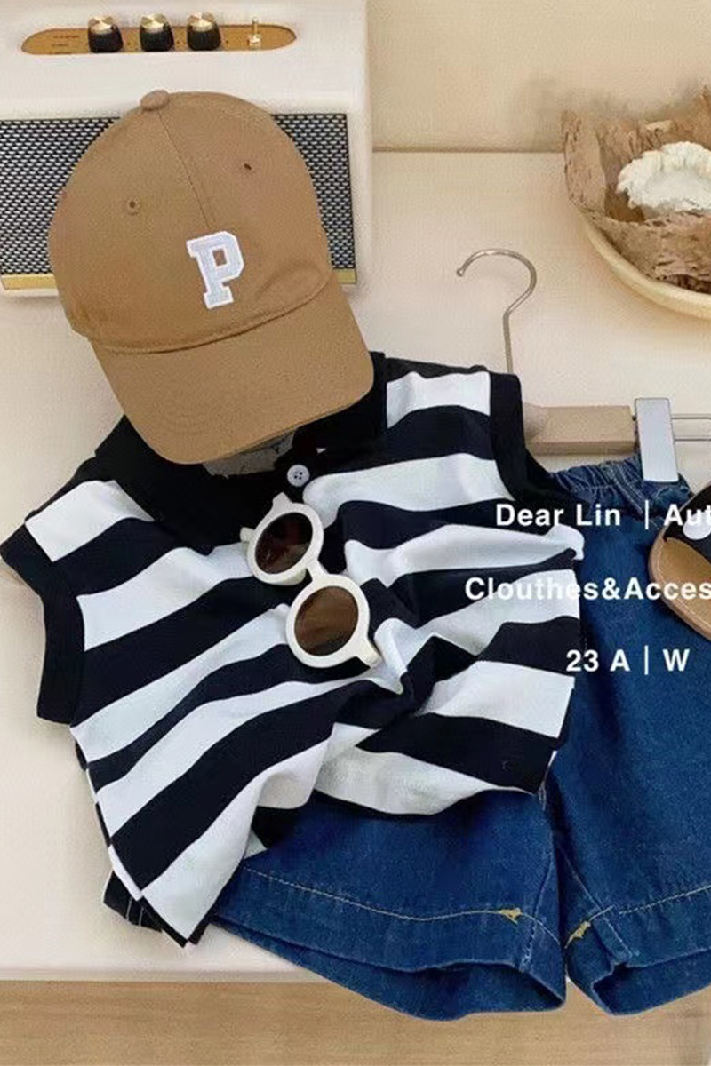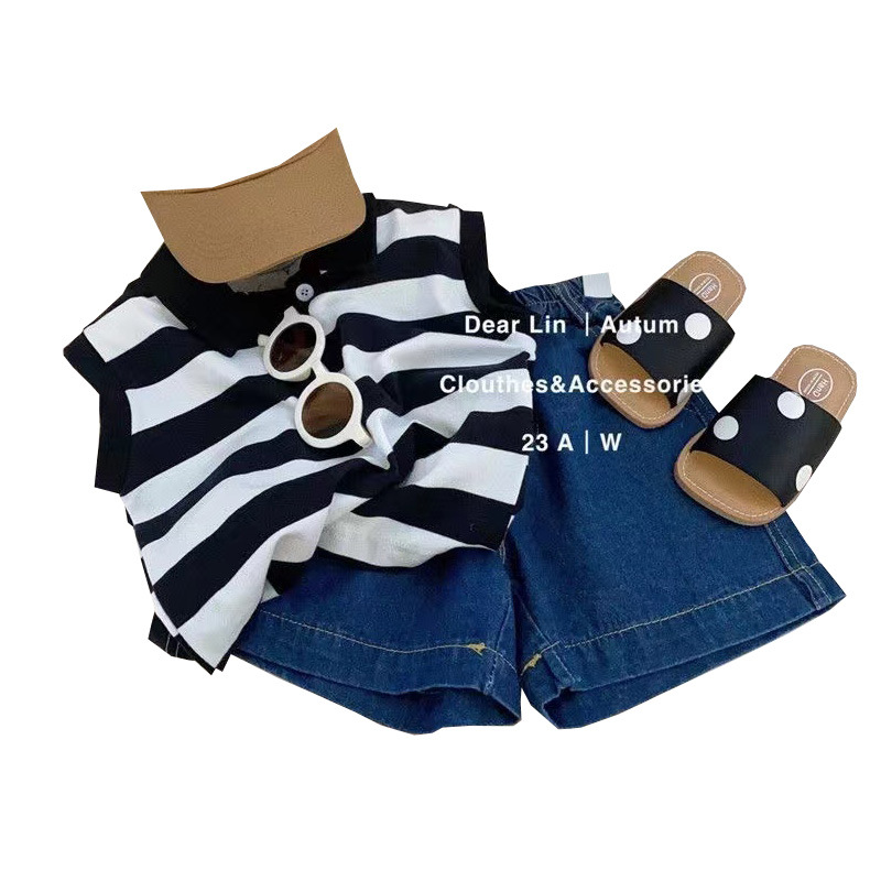 남학생과 여학생을위한 한국 스타일 아동복 2024 년 새로운 스타일 아기 민소매 조끼 잘 생긴 유행 캐주얼 투피스 세트스토어 가기