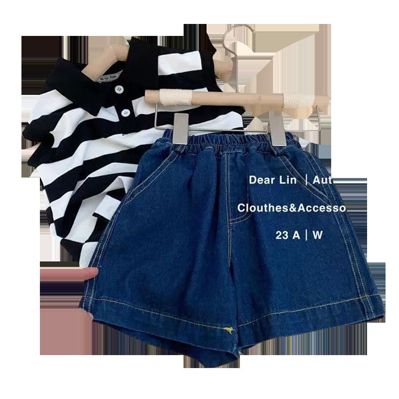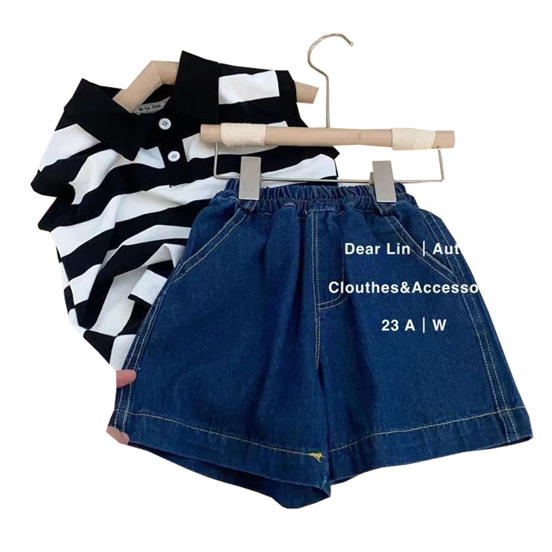 남학생과 여학생을위한 한국 스타일 아동복 2024 년 새로운 스타일 아기 민소매 조끼 잘 생긴 유행 캐주얼 투피스 세트