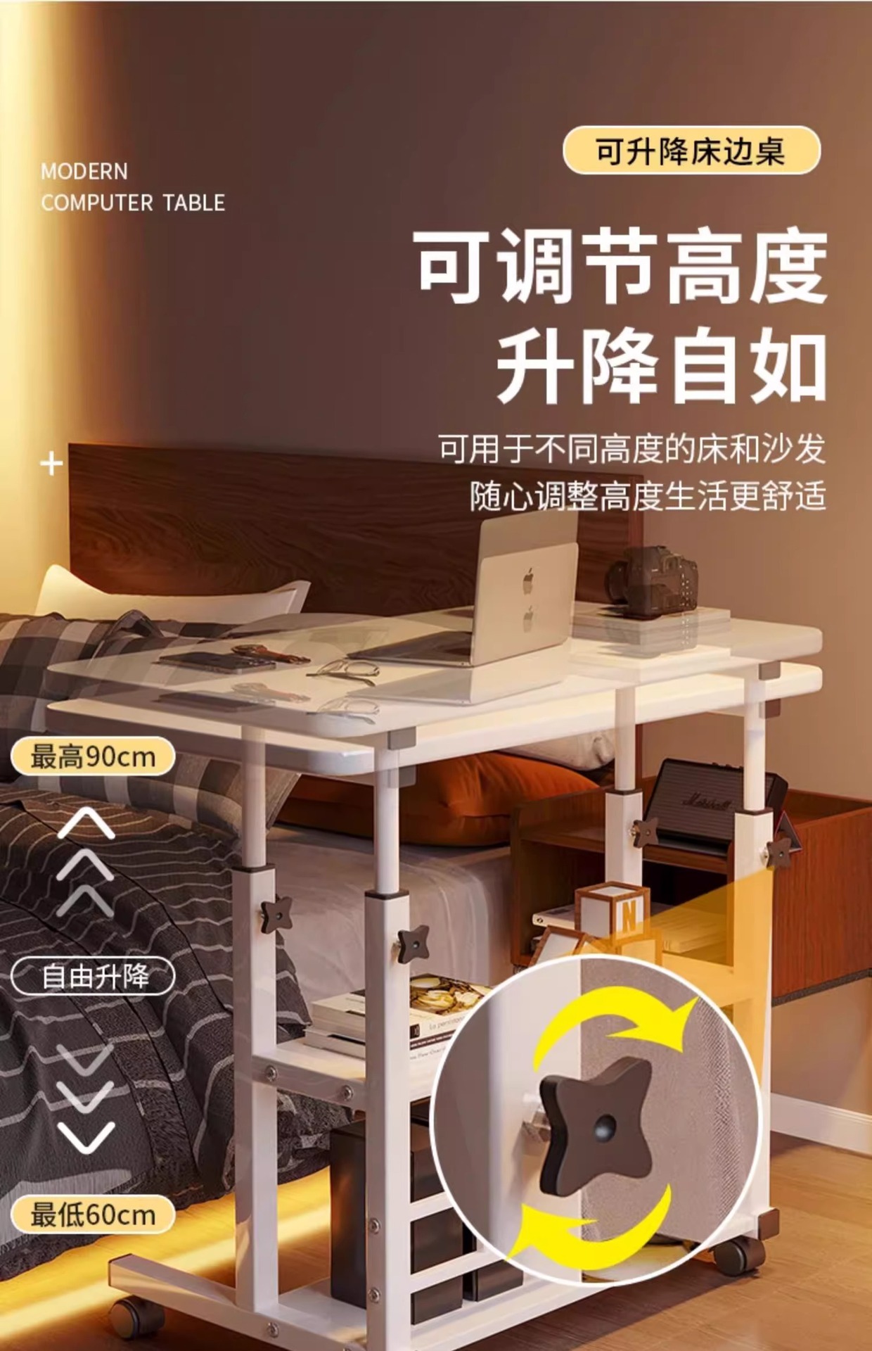 S ^ w 게으른 침대 옆 테이블 움직일 수있는 작은 책상 집 침실 침실 컴퓨터 책상 창조적 인 간단한 작은스토어 가기