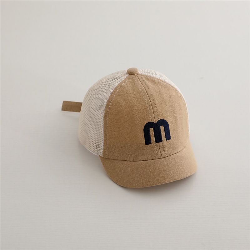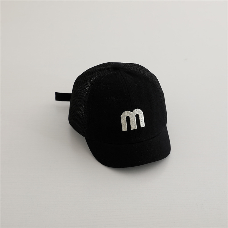 아기 모자 한국 M 편지 봄과 가을 얇은 짧은 모자 아기 소년과 소녀 메쉬 모자 여름스토어 가기