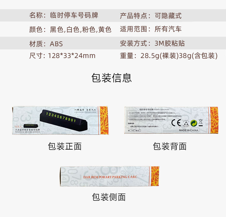 자동차 임시 주차 번호판은 로고를 인쇄할 수 있으며, 차량에 장착할 수 있으며 숨길 수 있으며, 전화번호판은 이동할 때 숨길 수 있으며 야간 발광 표시가 가능합니다.