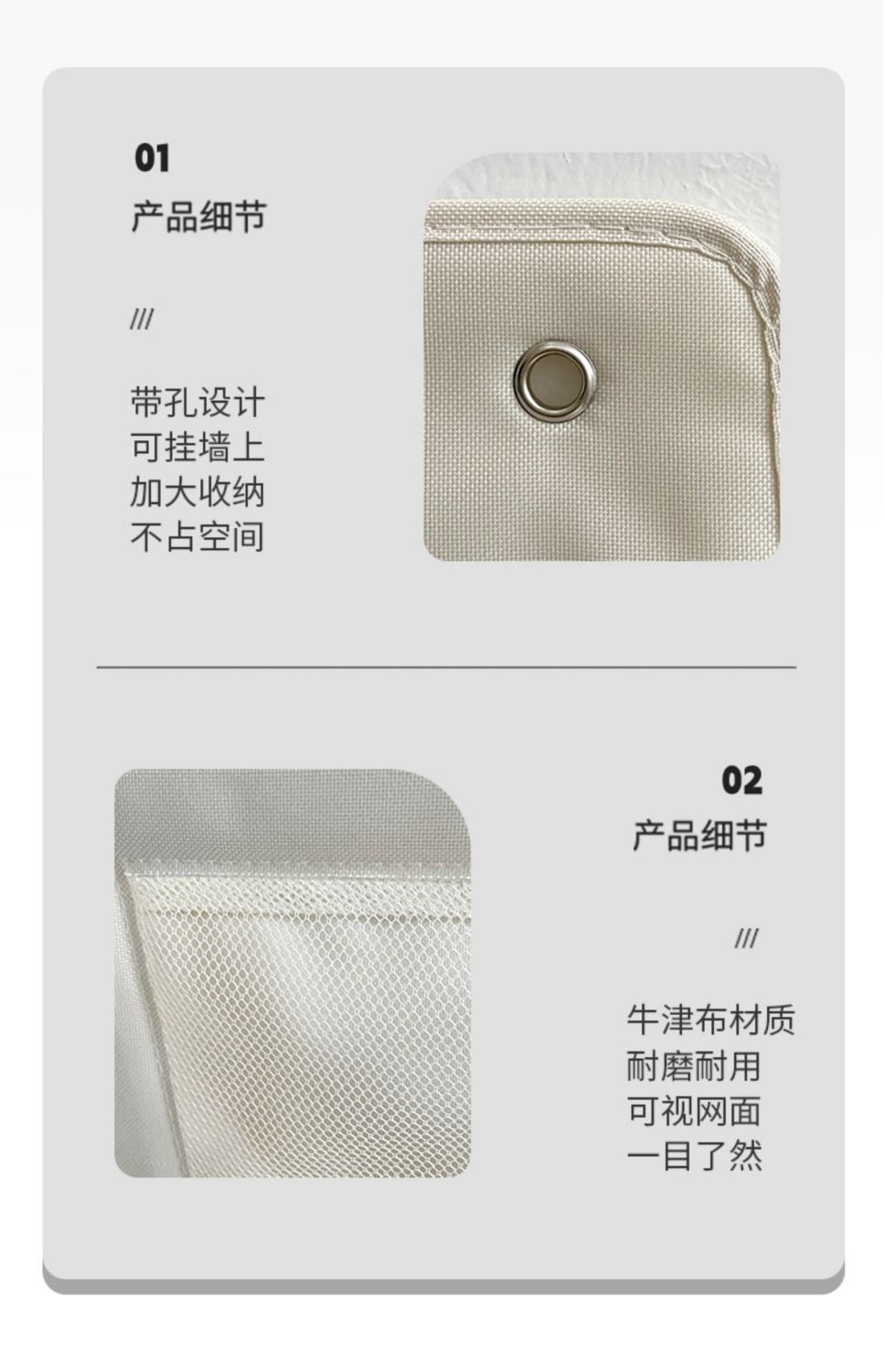 • [두꺼운 옥스포드 천, 세탁 가능, 프리 후크] 라이트 그레이 3겹