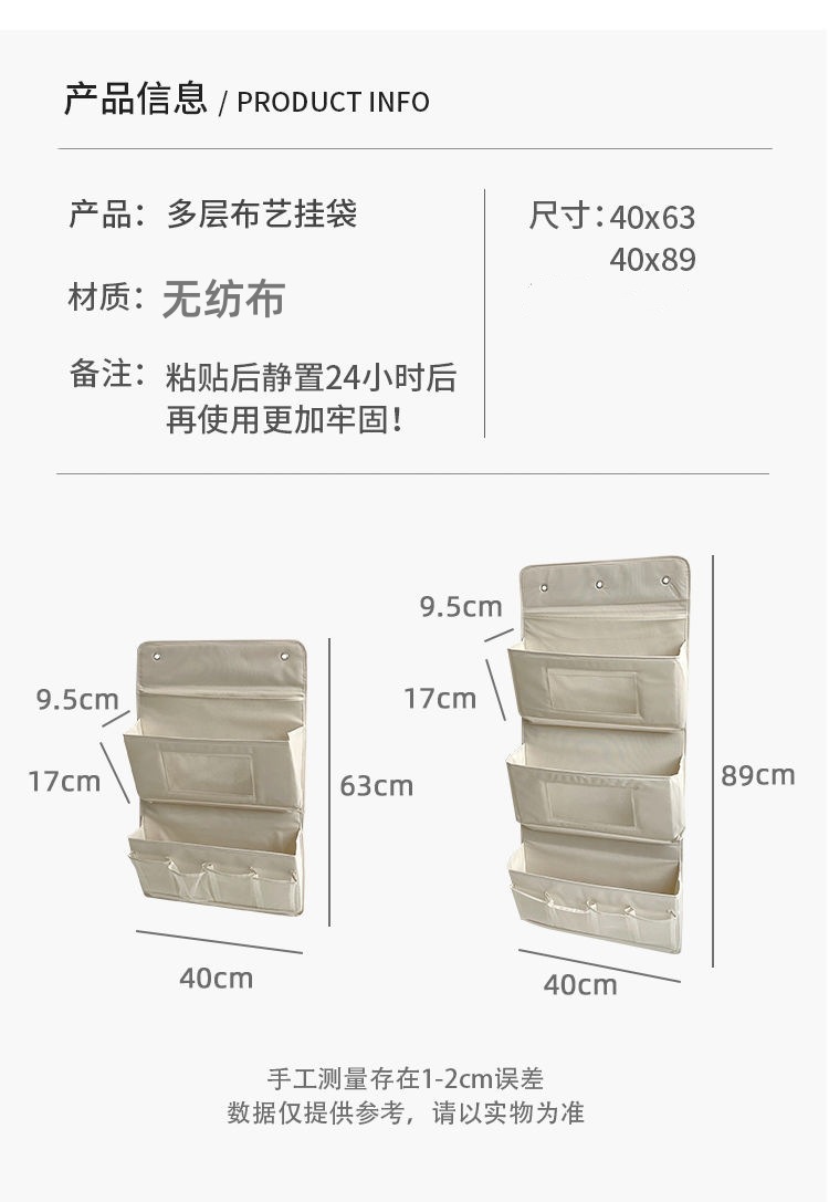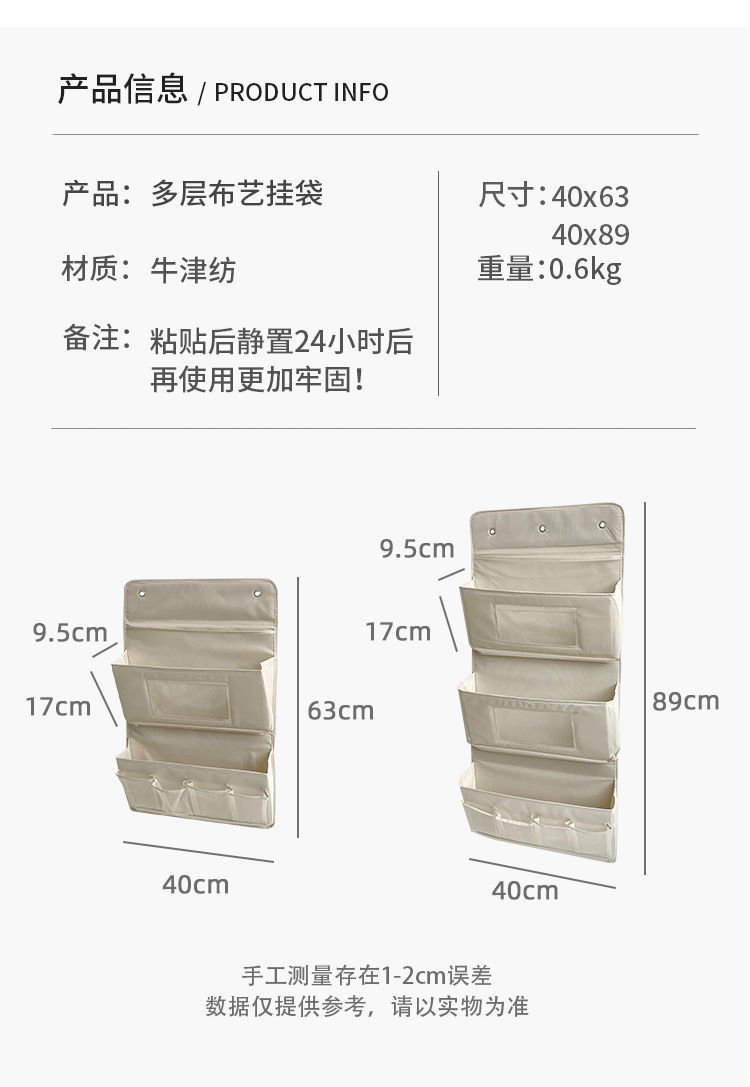 간단한 새로운 스타일의 저장 가방 벽 교수형 기숙사 문 후면 멀티 레이어 패브릭 교수형 가방 핏 백 패브릭 스토리지 교수형 가방스토어 가기