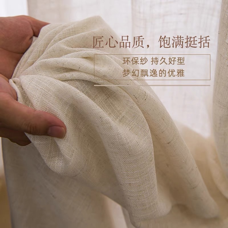 Ins 스타일 일본식 크림 컬러 투명 부기 린넨 커튼 거슬 침실 소녀 거실 베이 창 두껍게스토어 가기