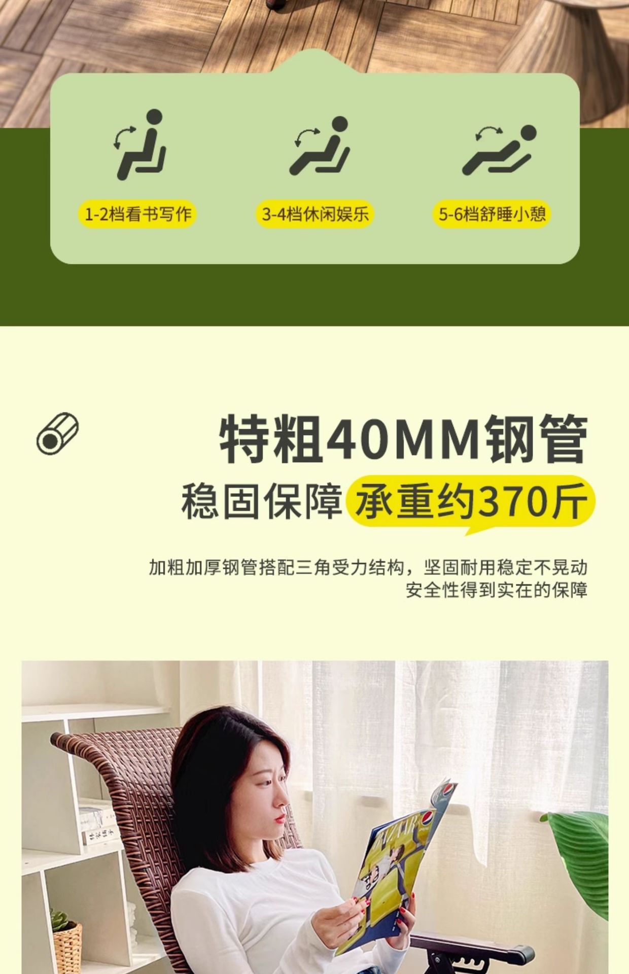 Q ^ X 점심 레코더 접이식 점심 의자 잠자는 의자 발코니 레저 등나무 의자 게으른 여름 레저 의자 대나무스토어 가기
