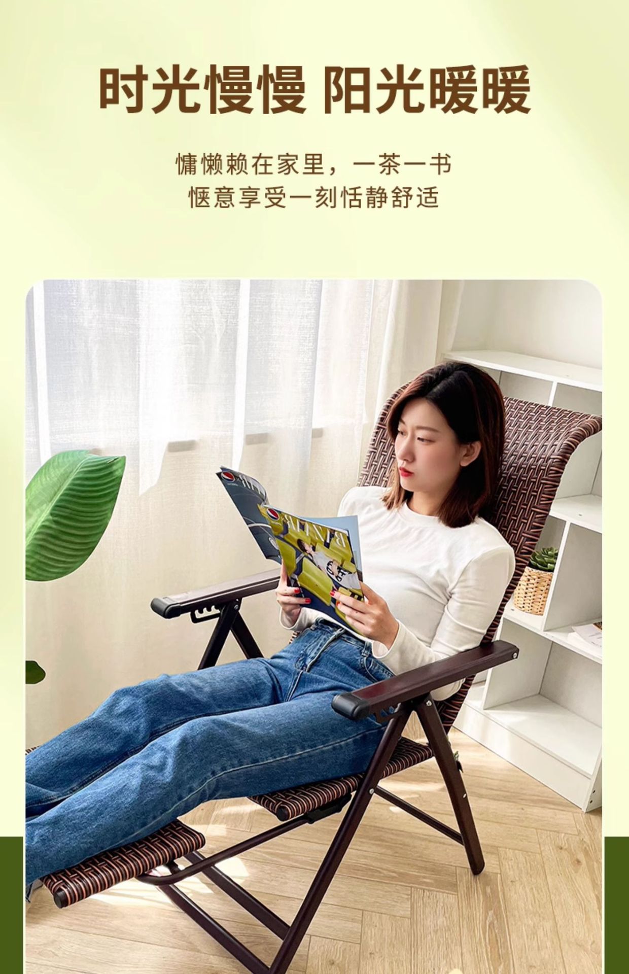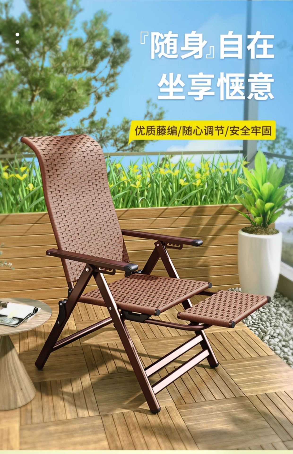 Q ^ X 점심 레코더 접이식 점심 의자 잠자는 의자 발코니 레저 등나무 의자 게으른 여름 레저 의자 대나무