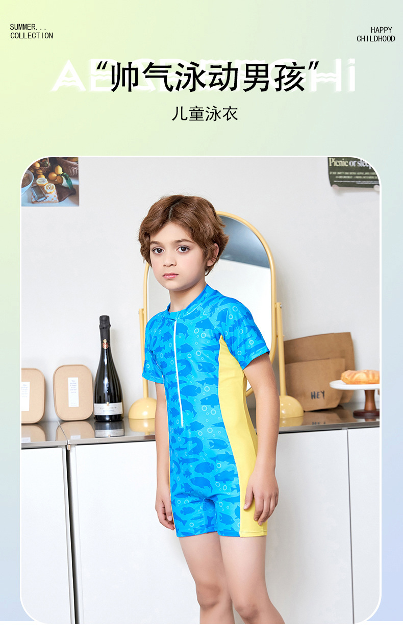 국경 간 어린이 수영복 소년 반팔 선 스크린 소년의 여름 빠른 건조 중 · 대형 소년 수영 세트