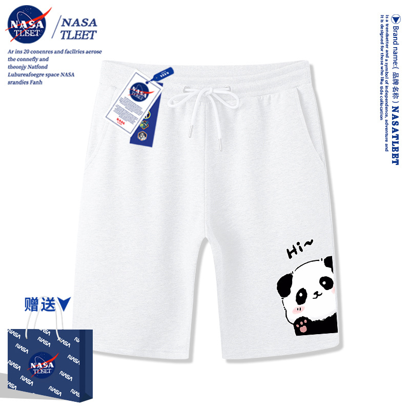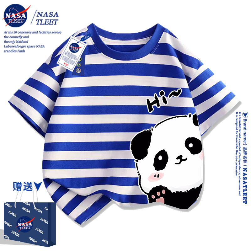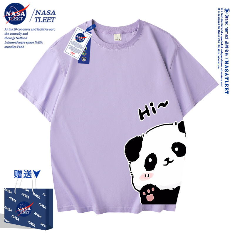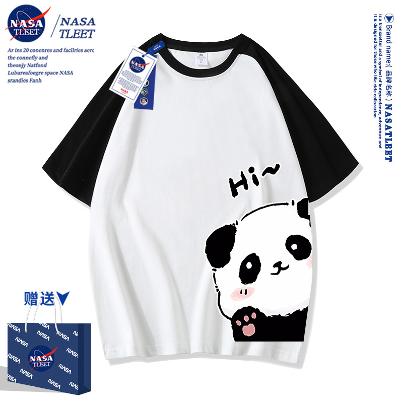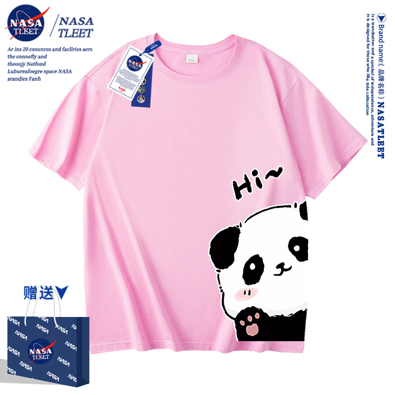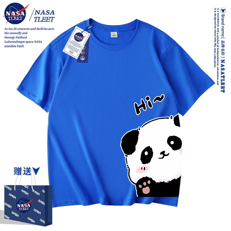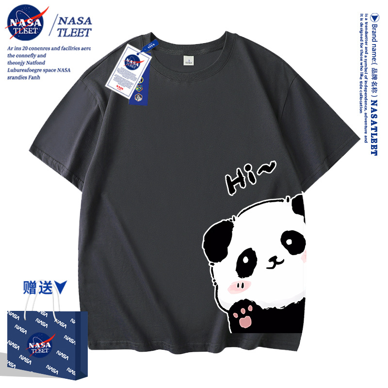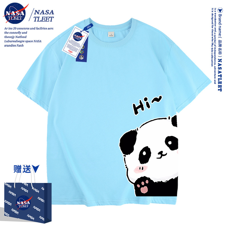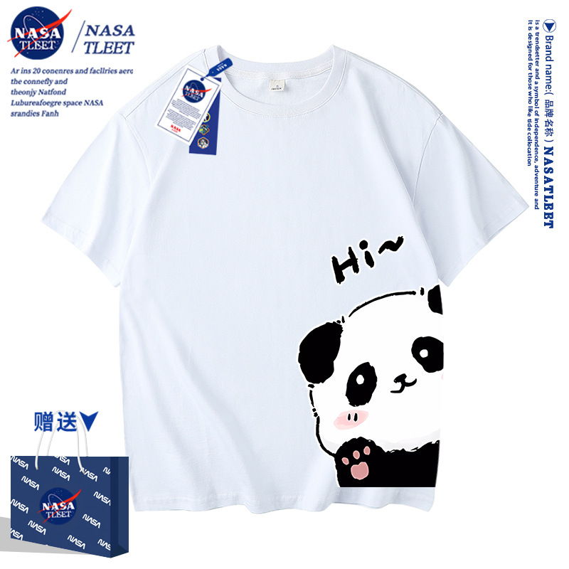 NASA 공동 브랜드 만화 귀여운 팬더 반팔 남성 및 여성 아동복 여름 새로운 순수 면화 유행 병 셔츠 느슨한 T스토어 가기