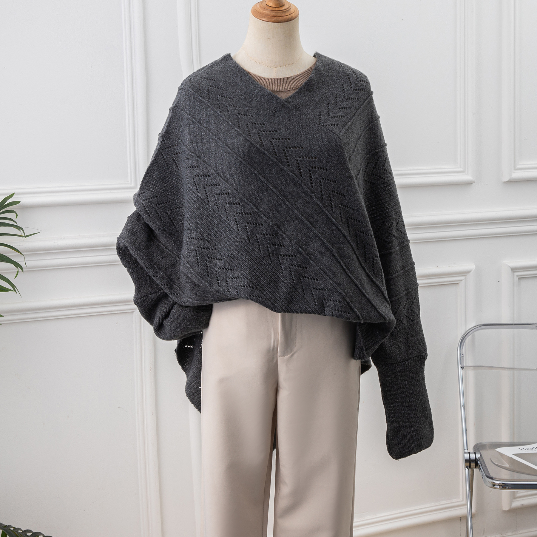 봄과 가을 스웨터 할로우 얇은 외부 패션 느슨한 여행 따뜻한 어깨 풀오버 니트 목도리스토어 가기