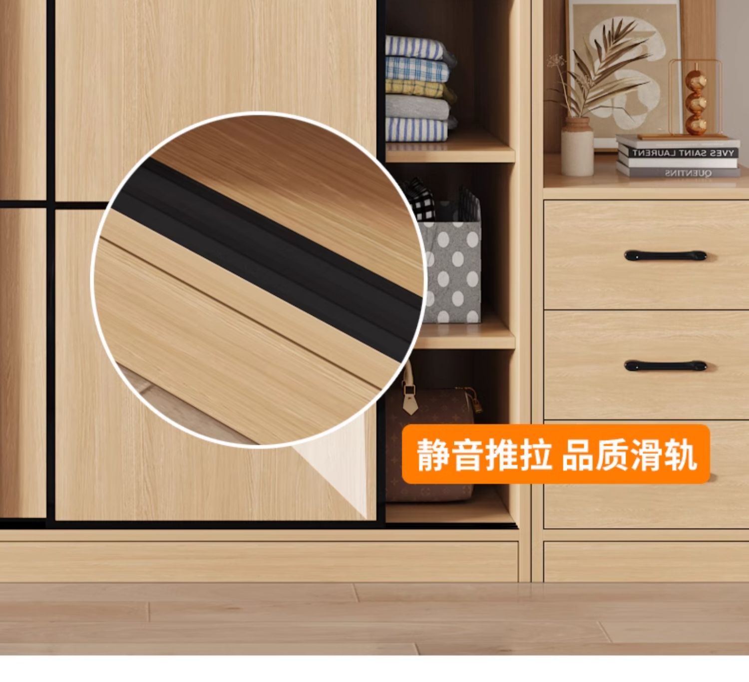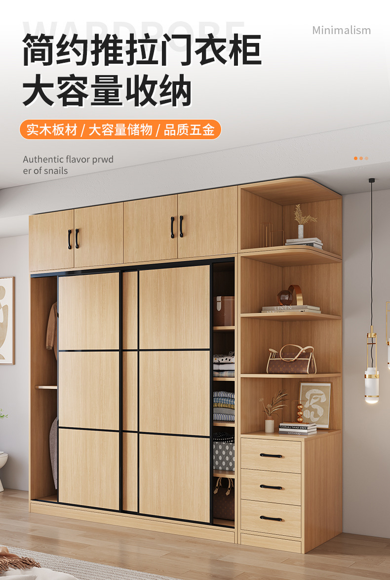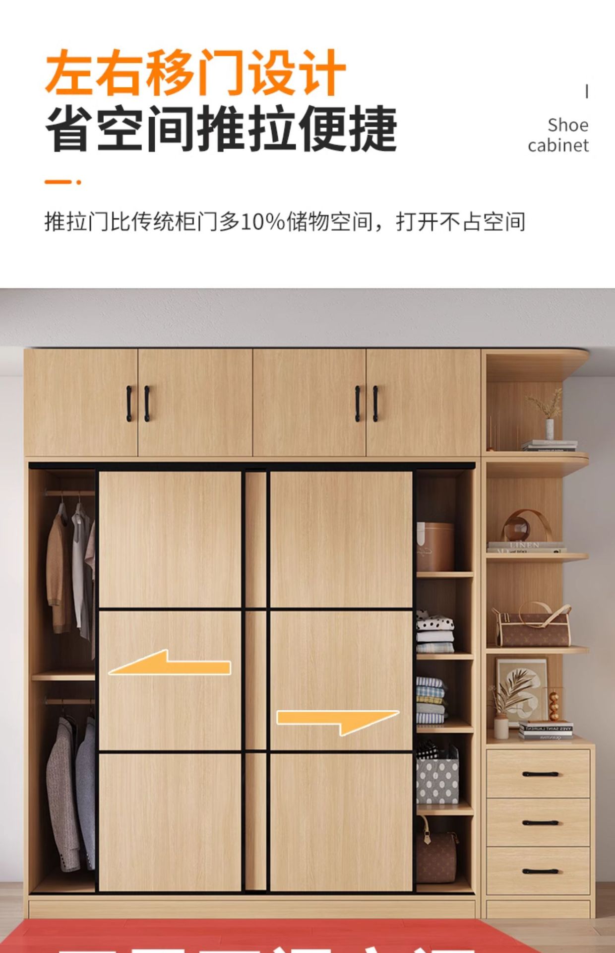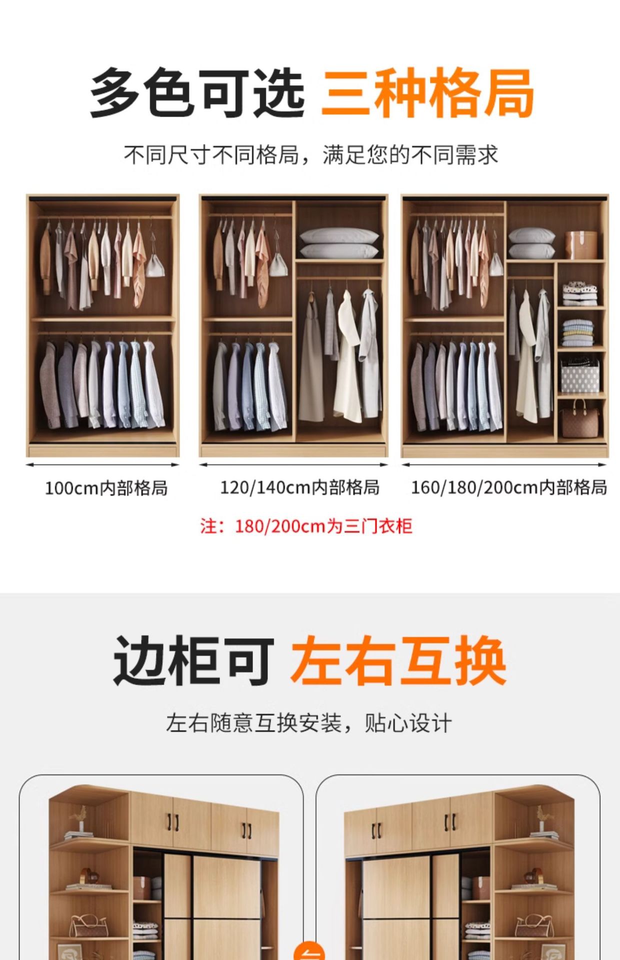 G $ L 모든 단단한 나무 옷장 홈 침실 슬라이딩 도어 로그 컬러 간단한 캐비닛 임대 주택 작은 아파트를 주문할 수 있습니다스토어 가기