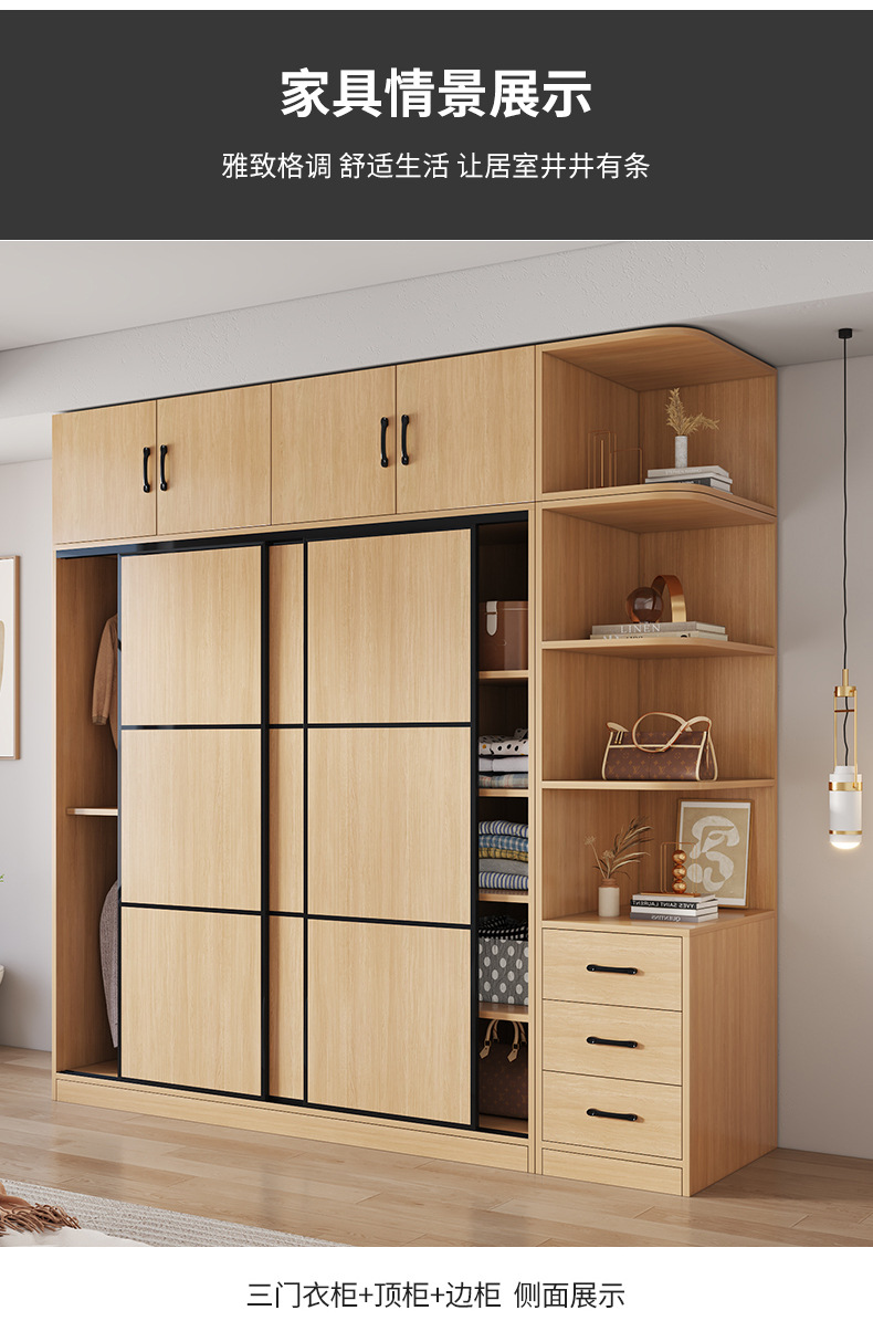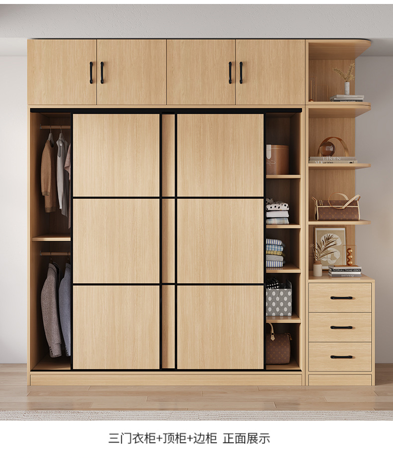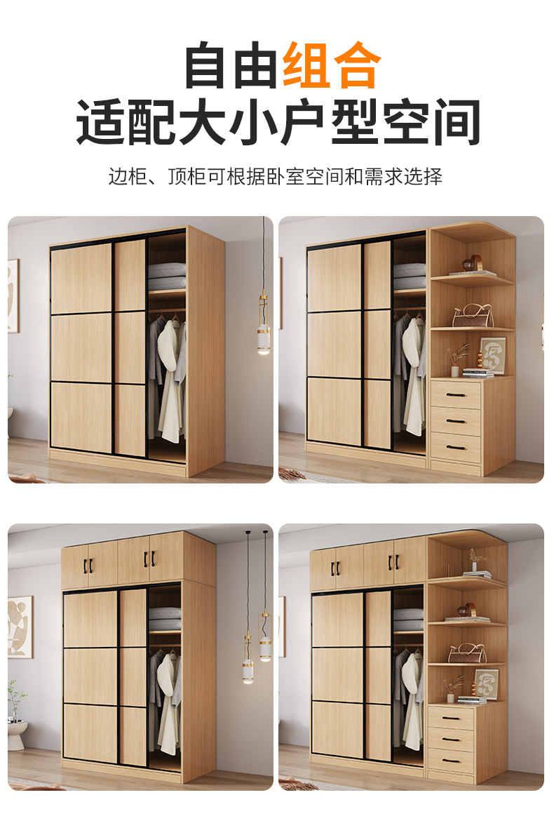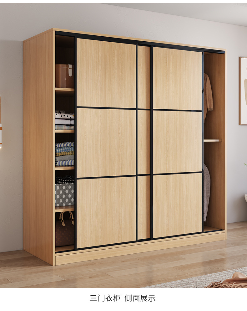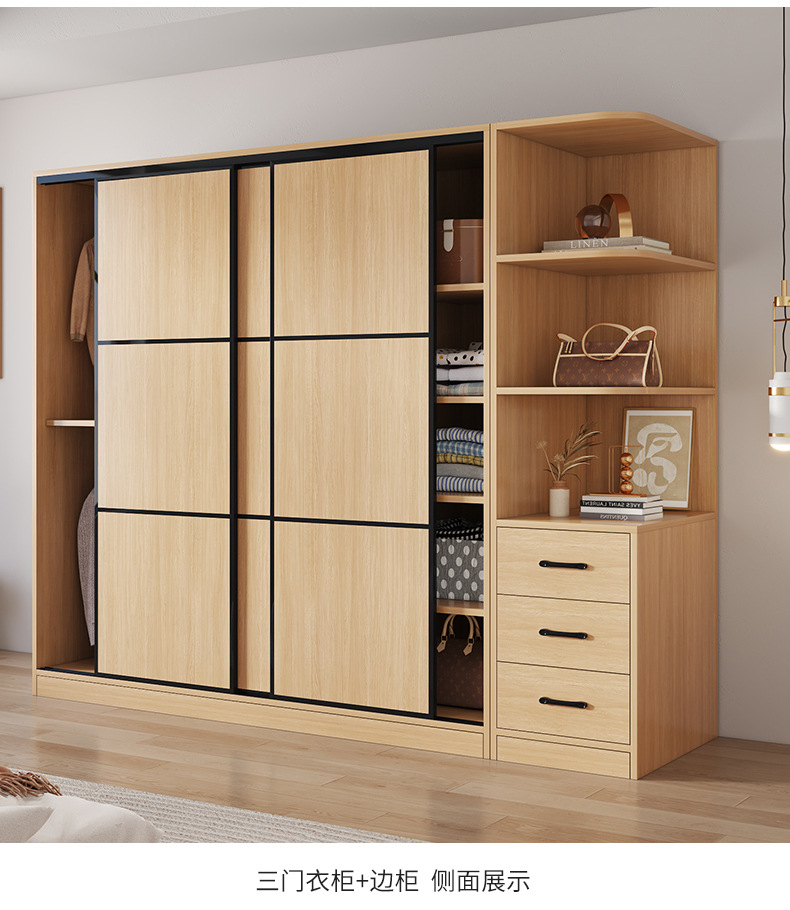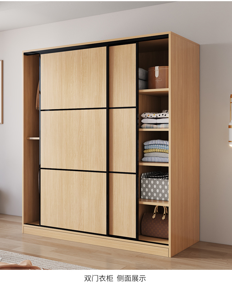 G $ L 모든 단단한 나무 옷장 홈 침실 슬라이딩 도어 로그 컬러 간단한 캐비닛 임대 주택 작은 아파트를 주문할 수 있습니다스토어 가기