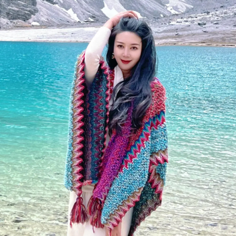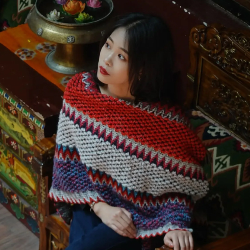 • 민족 스타일 목도리 [로즈 레드]]