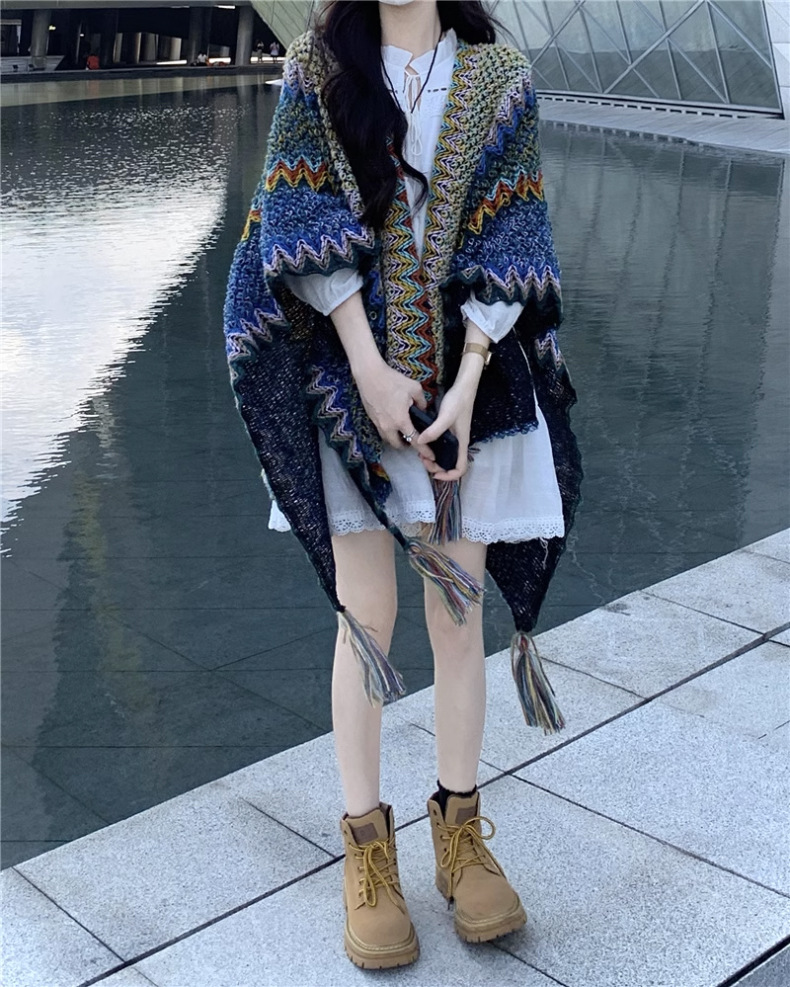 • 민족 스타일 목도리 [공작 블루]