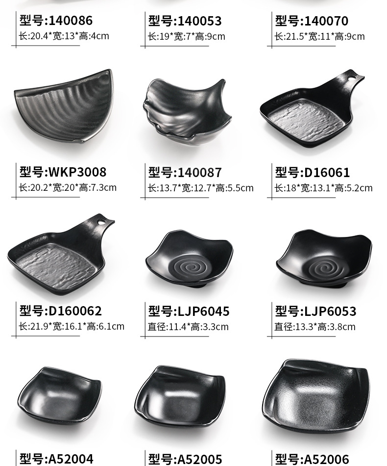 KTV 스낵 플레이트 창조적 인 블랙 멜라민 식기 바베큐 냄비 일본식 차가운 접시 반찬 플라스틱 상업스토어 가기