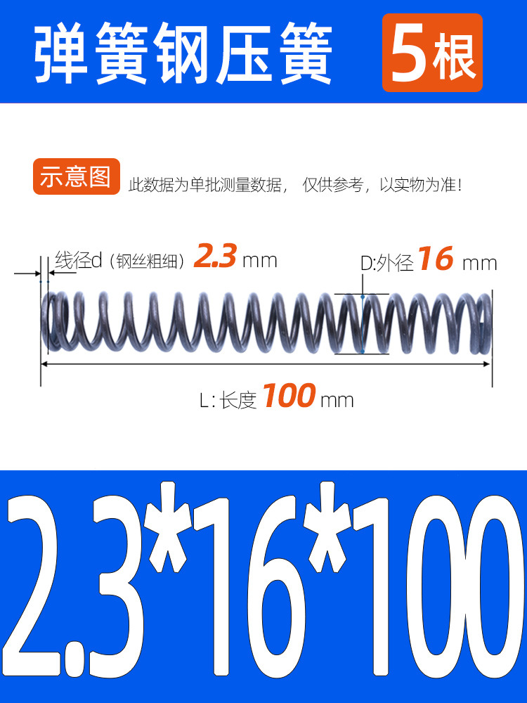 긴 100/200/300/400 압축 스프링 와이어 직경 2.3 두꺼운 스프링 스틸 압축 봄 Y 충격 흡수 반환 노란색