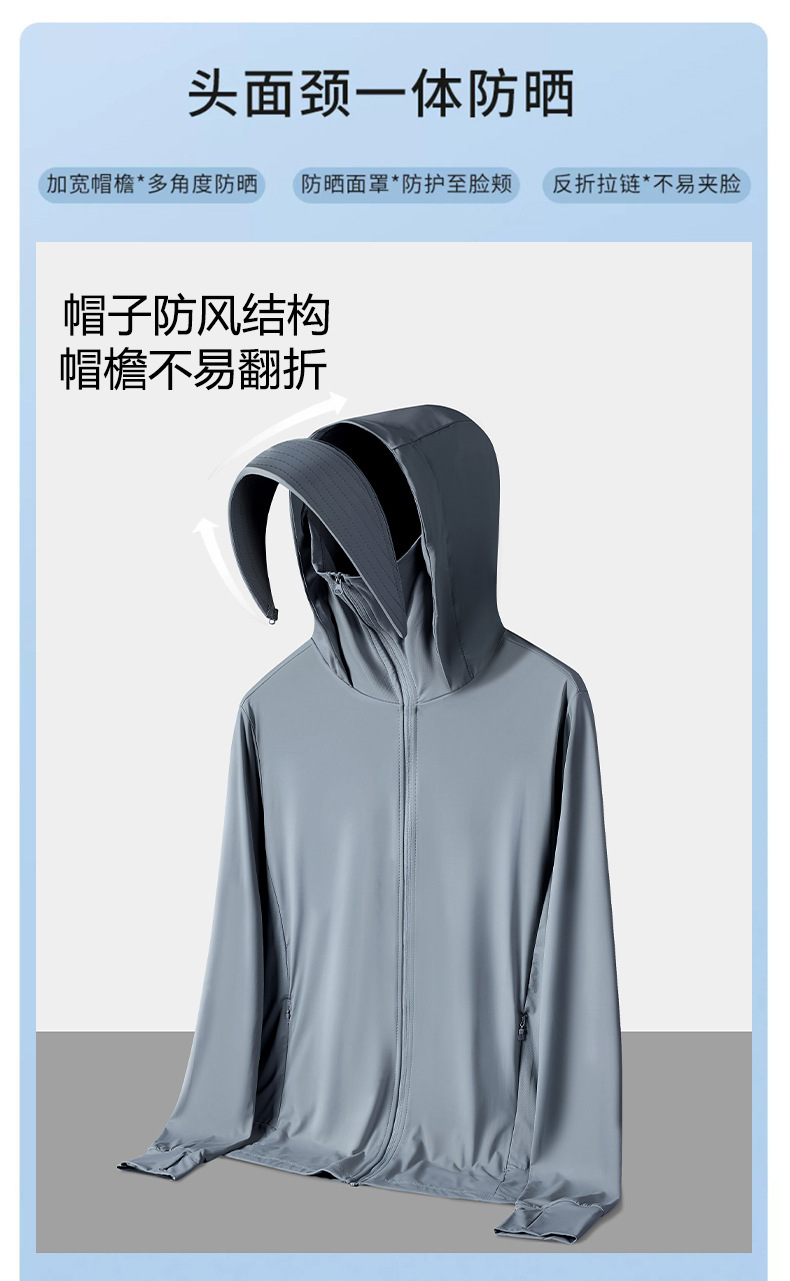 선스크린 의류 여름 여성용 자외선 차양 후드 스킨 의류 얇은 통기성 아이스 실크 선 스크린 의류 낚시 의류 남성용