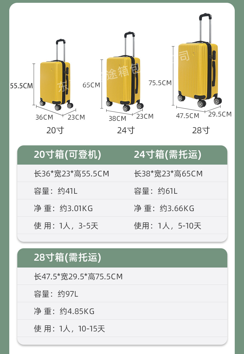 노란색 ABS 수직 스트라이프 가방 기업 자동차 선물 상자 20 인치 여행 트롤리 케이스 유니버설 휠 수하물 케이스스토어 가기