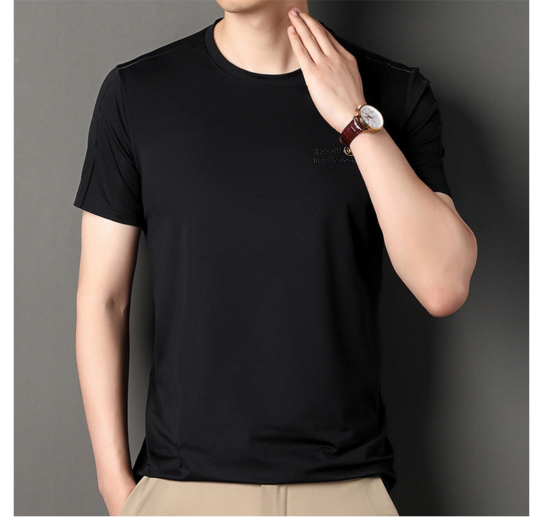 젊고 중년 여름 남자의 새로운 자수 둥근 목 유행 티셔츠 느슨한 캐주얼 반팔 통기성베이스 탑 트렌디스토어 가기