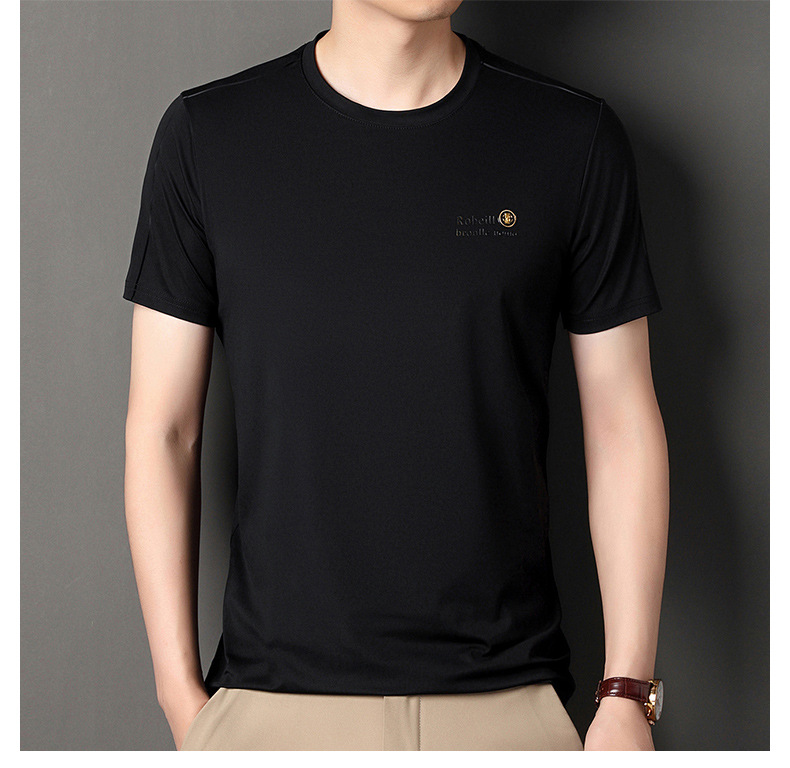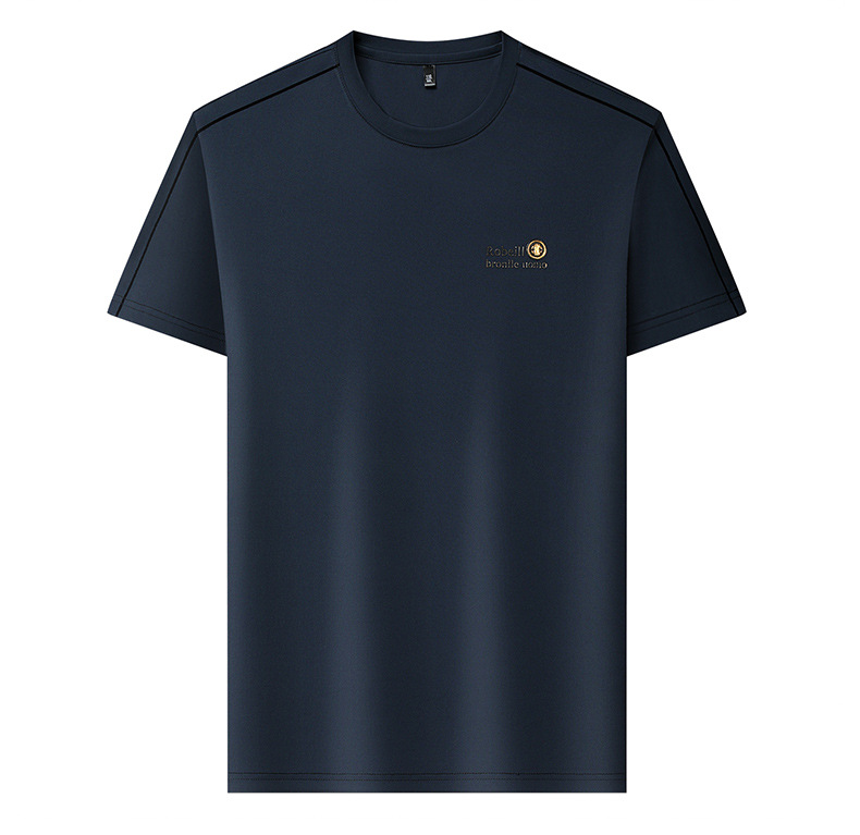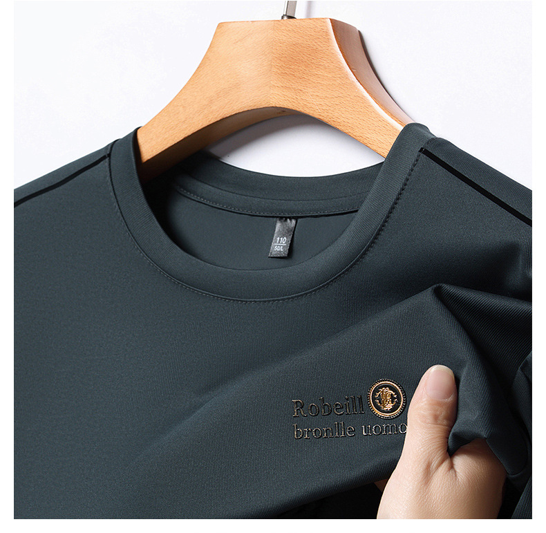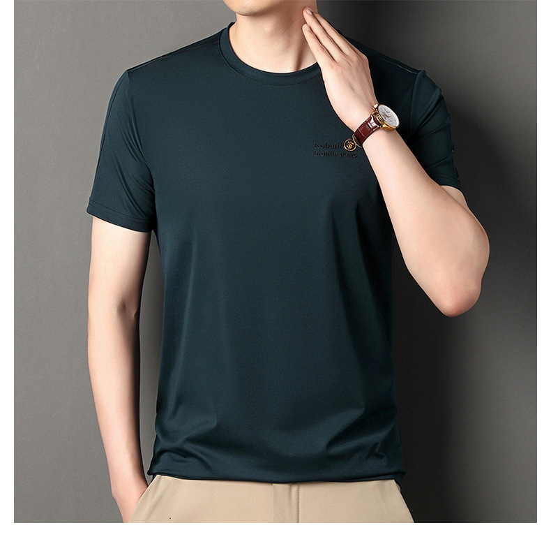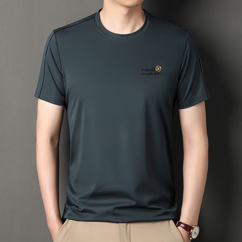 젊고 중년 여름 남자의 새로운 자수 둥근 목 유행 티셔츠 느슨한 캐주얼 반팔 통기성베이스 탑 트렌디