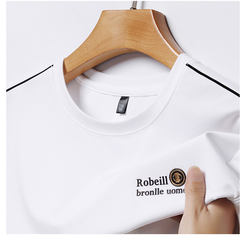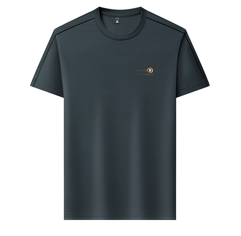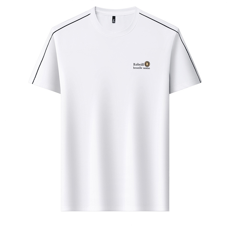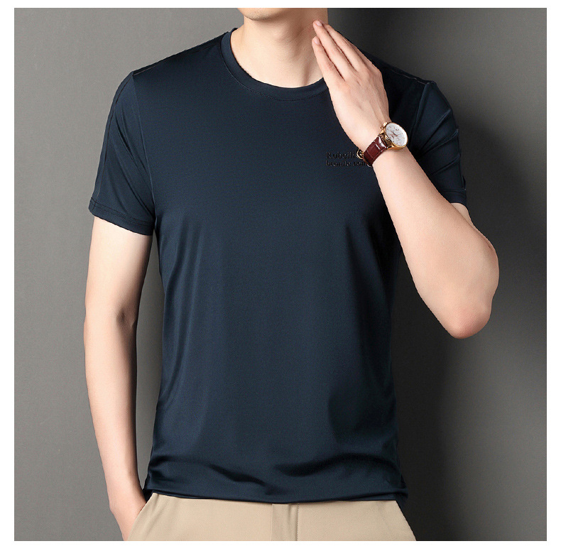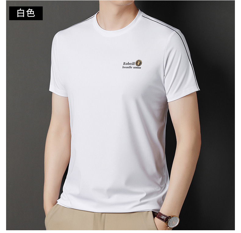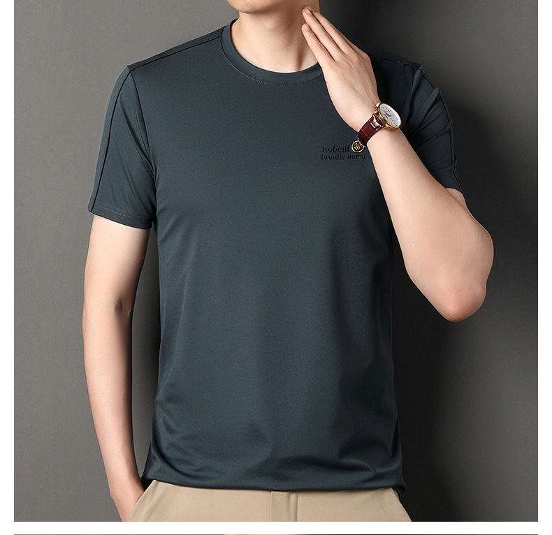 젊고 중년 여름 남자의 새로운 자수 둥근 목 유행 티셔츠 느슨한 캐주얼 반팔 통기성베이스 탑 트렌디