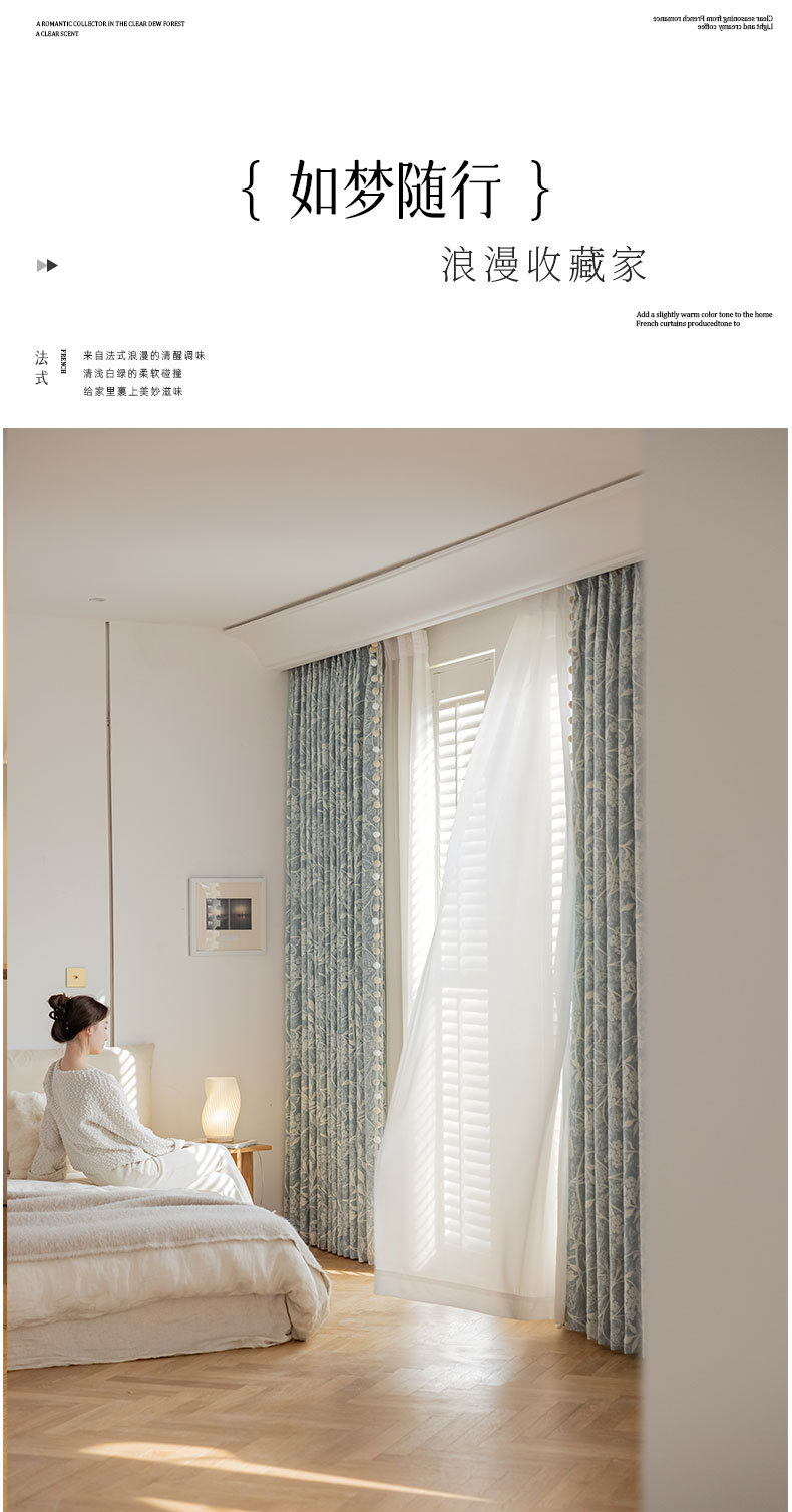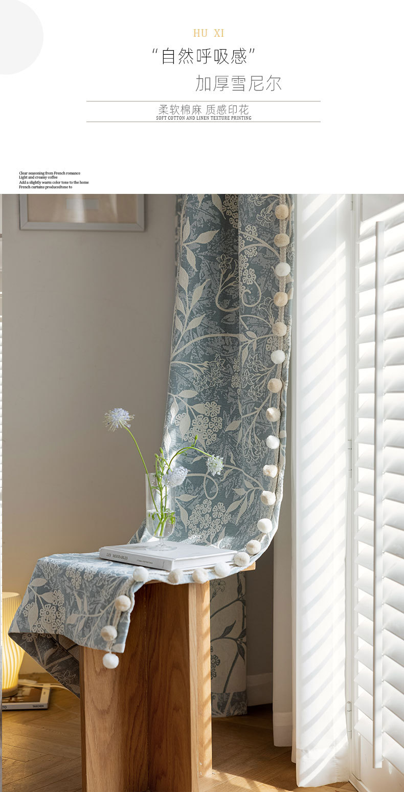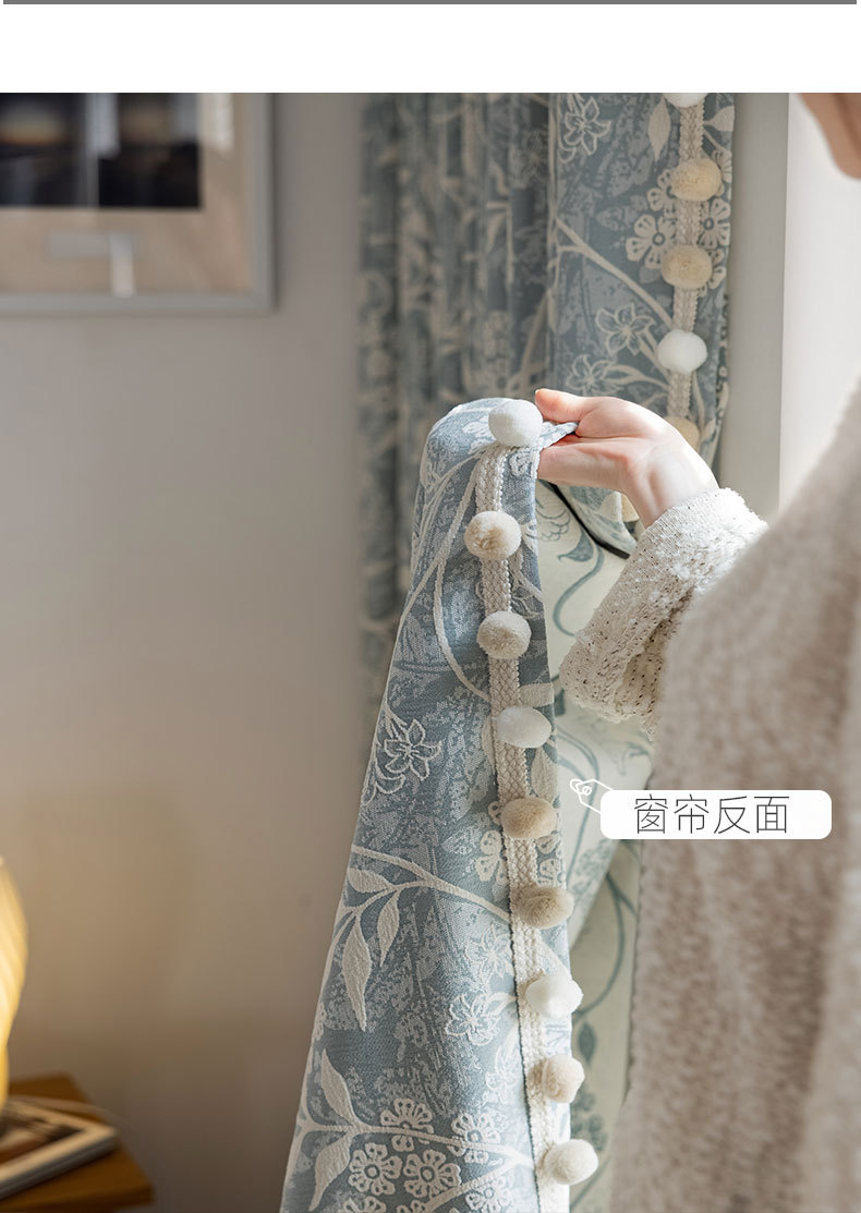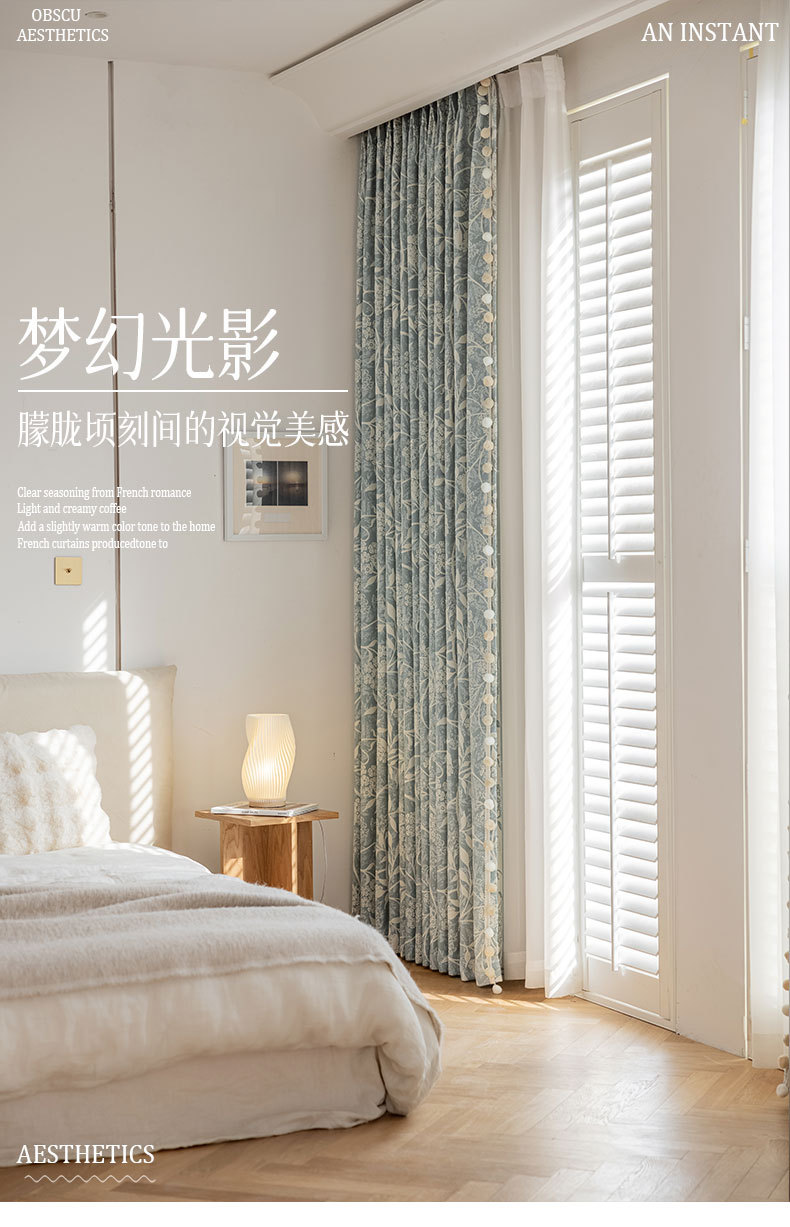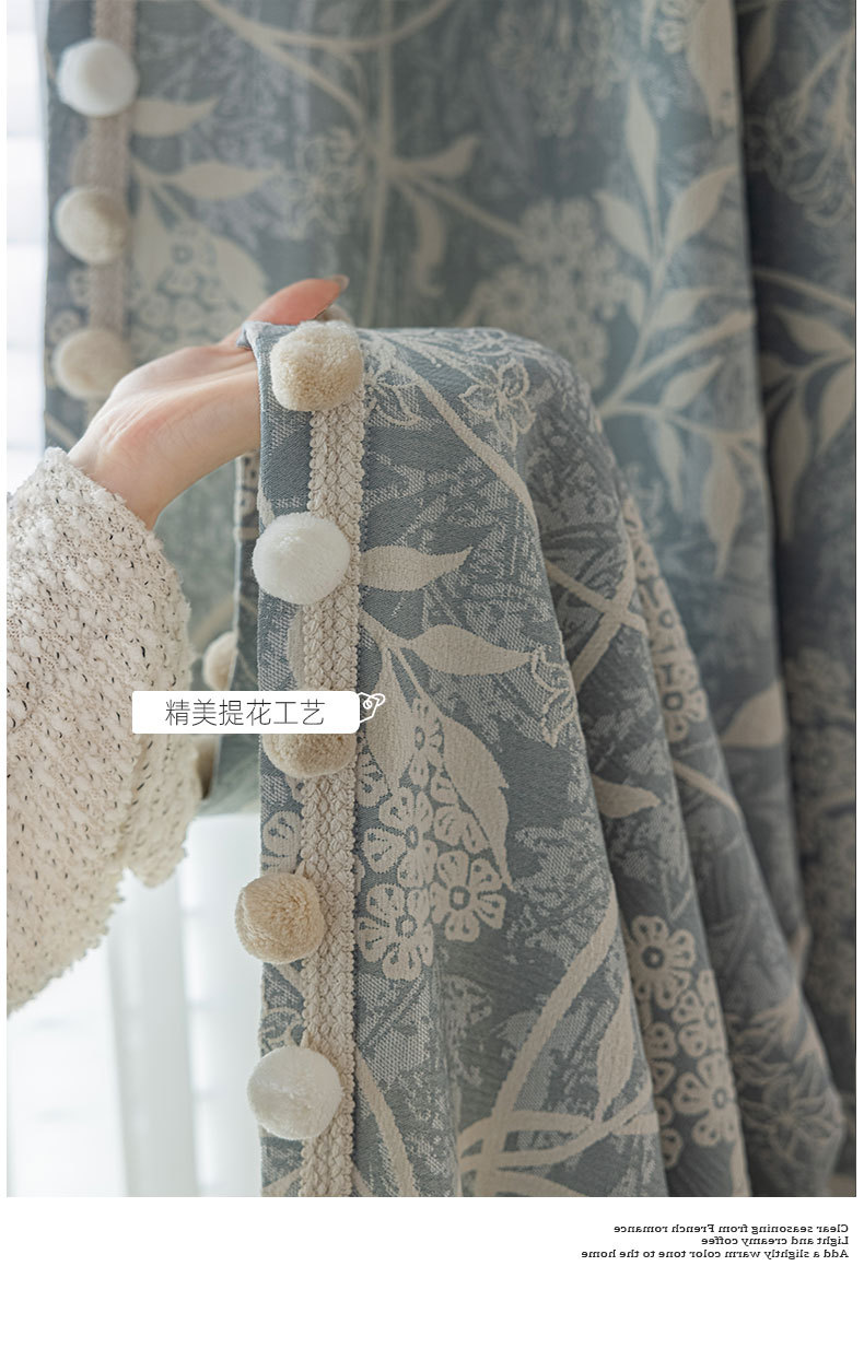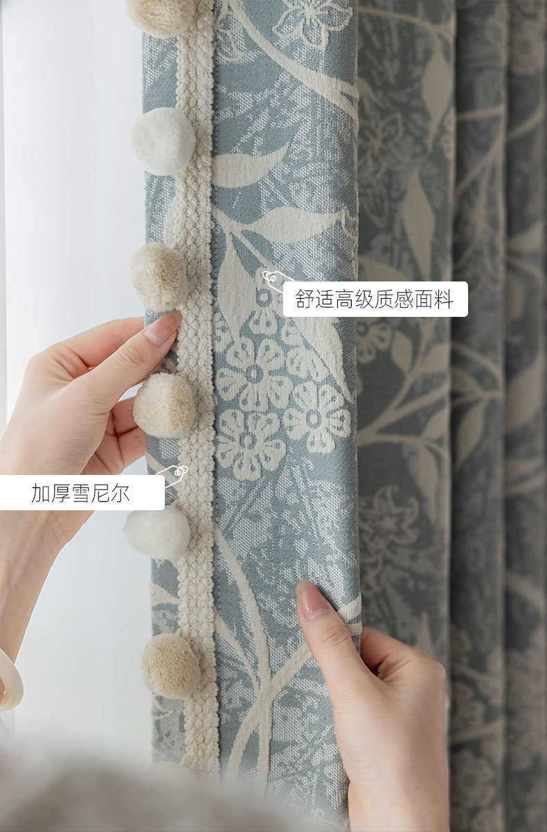 2025년 신형 헤이즈 블루 거실 셔닐 자카드 커튼, 고급스럽고 두꺼운 침실용 고차광 커튼스토어 가기