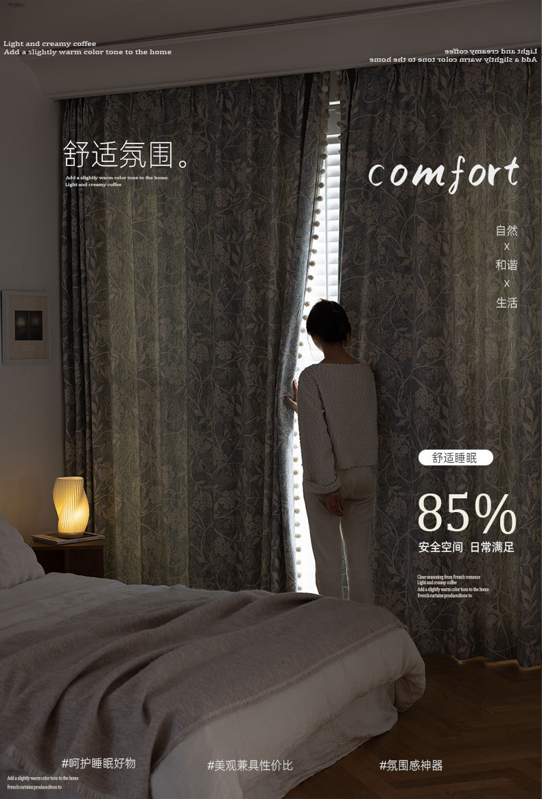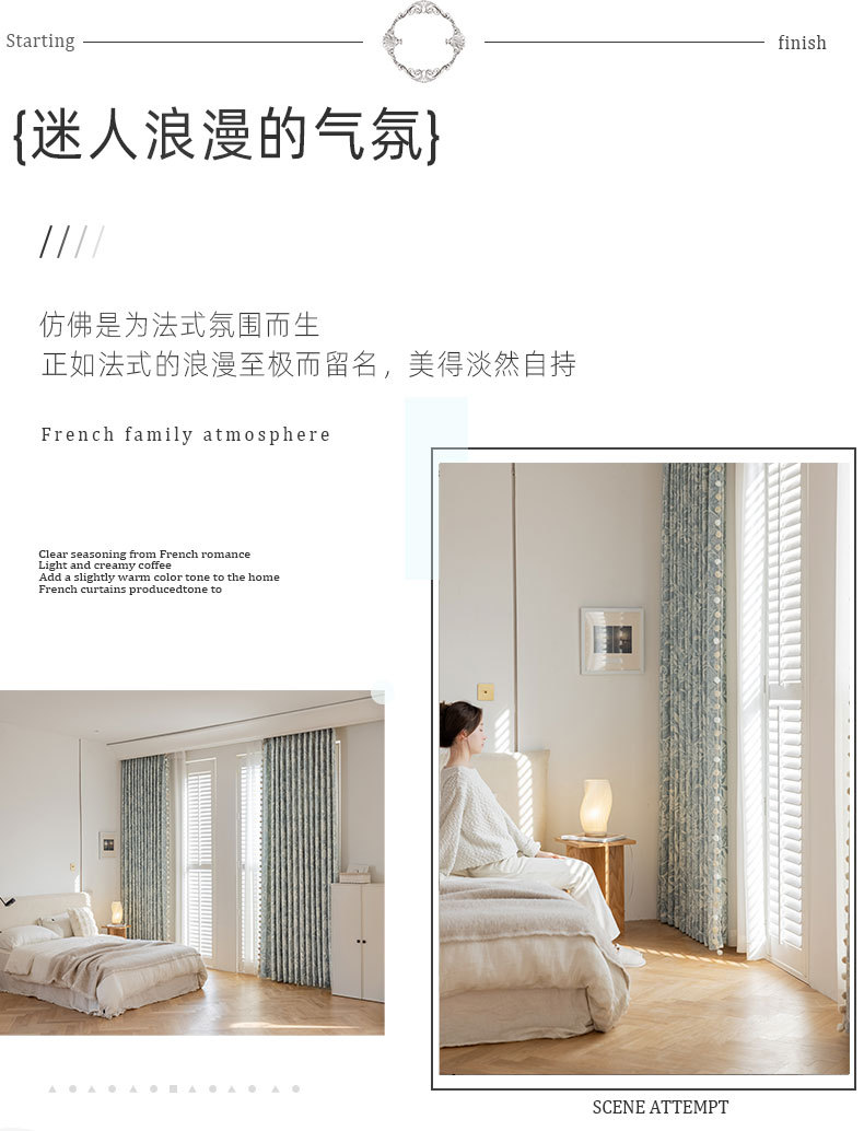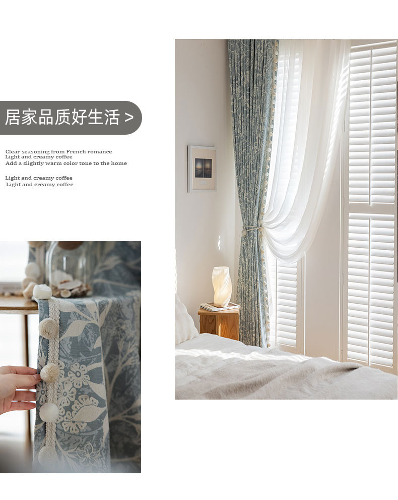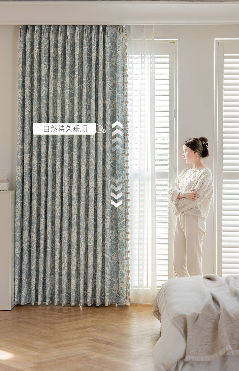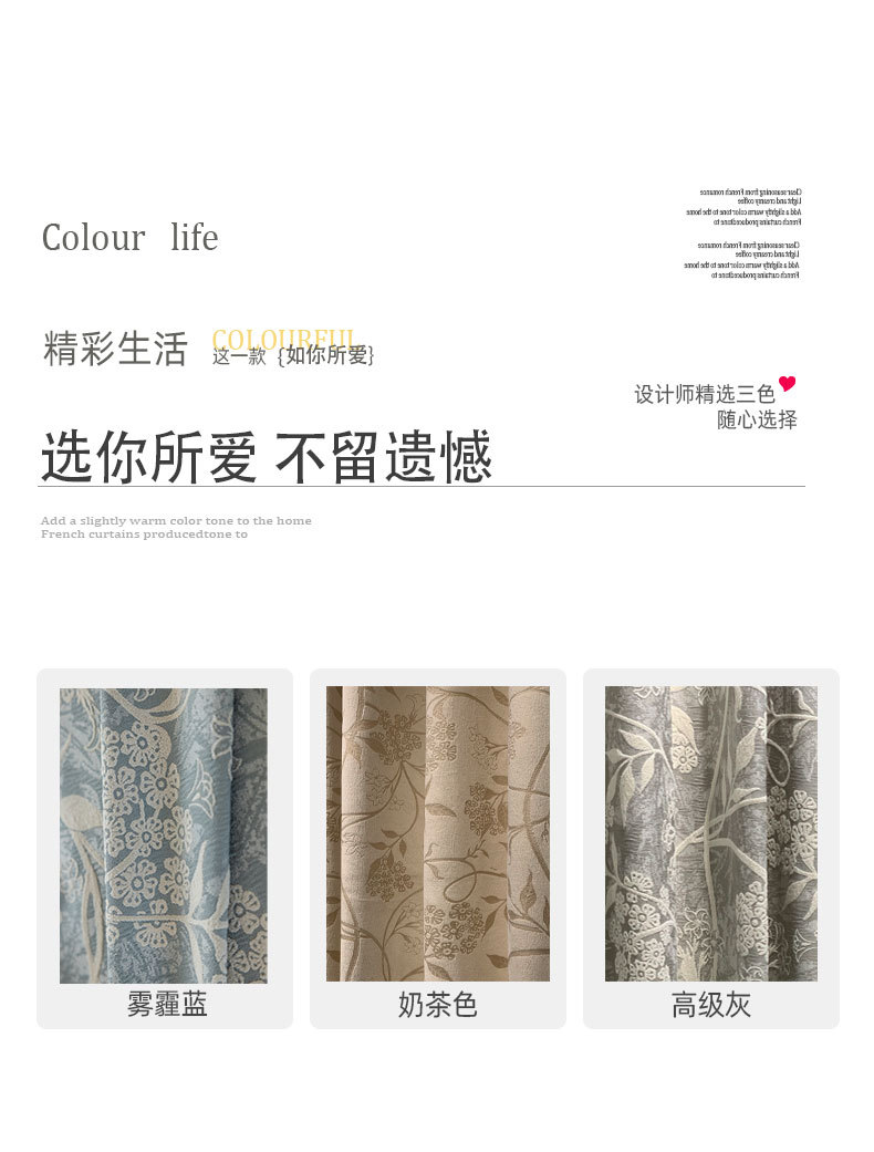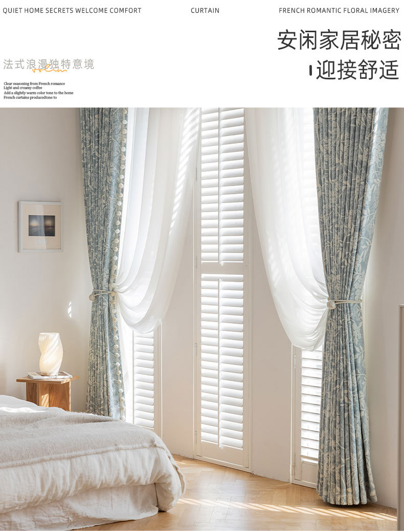 2025년 신형 헤이즈 블루 거실 셔닐 자카드 커튼, 고급스럽고 두꺼운 침실용 고차광 커튼스토어 가기