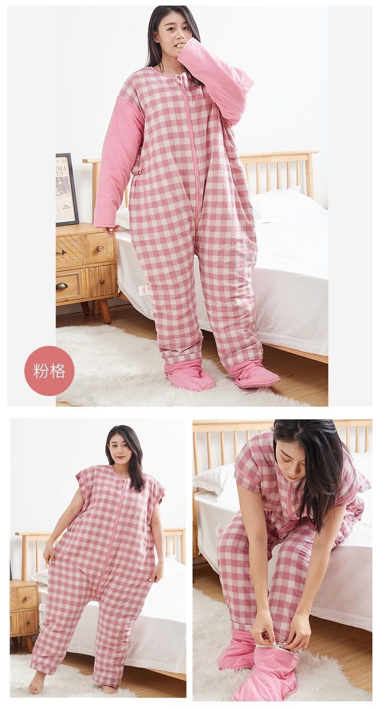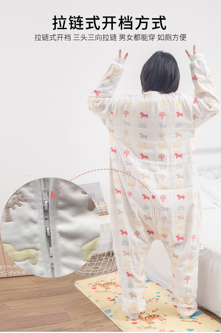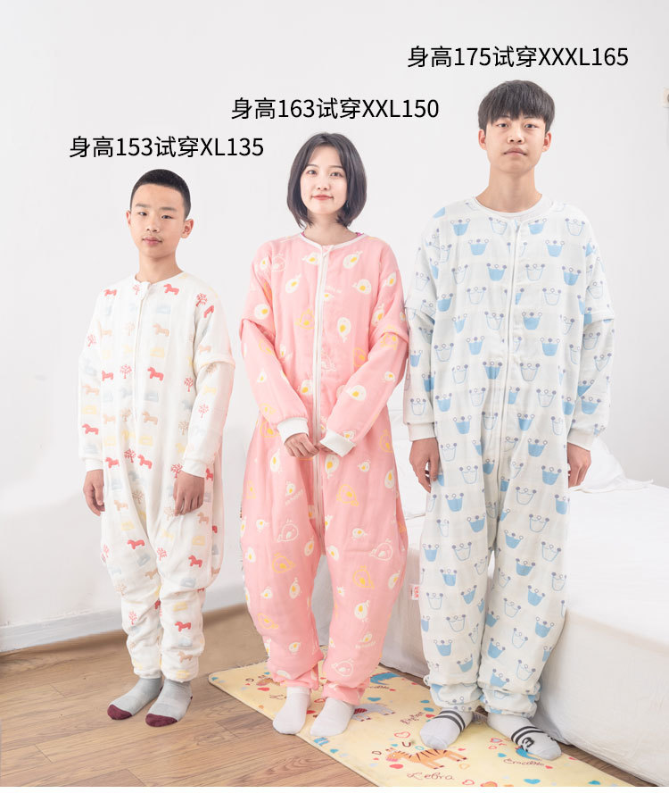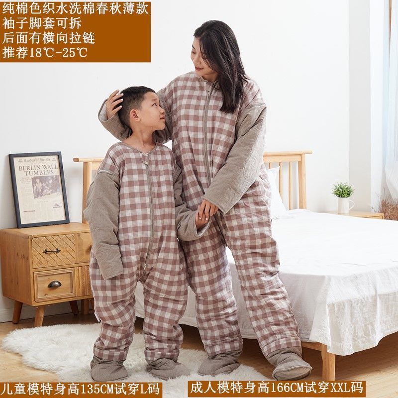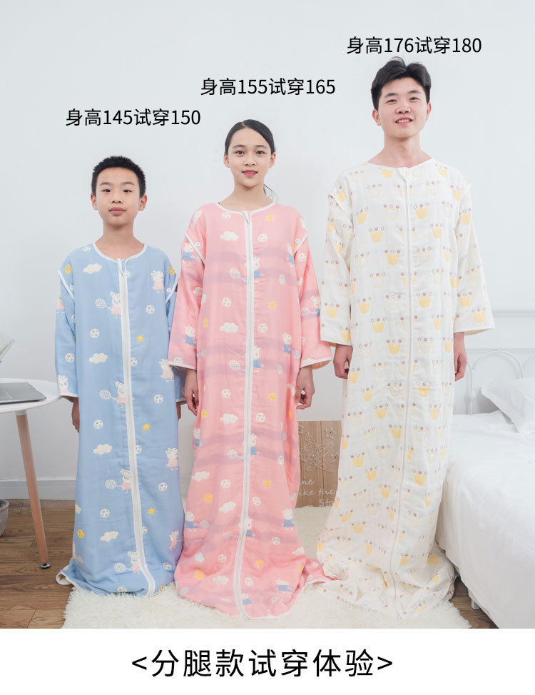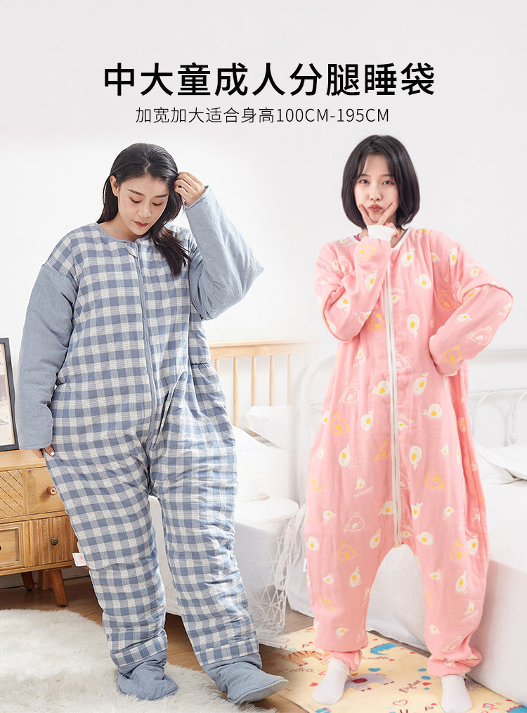 갈라진 다리와 발을 가진 어린이를위한 킥 방지 슬리핑 백 아기의 중 · 노인 및 학생을위한 봄과 가을 거즈 백 성인 겨울 두꺼운 슬리핑 백