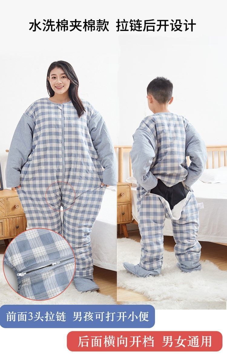 갈라진 다리와 발을 가진 어린이를위한 킥 방지 슬리핑 백 아기의 중 · 노인 및 학생을위한 봄과 가을 거즈 백 성인 겨울 두꺼운 슬리핑 백스토어 가기