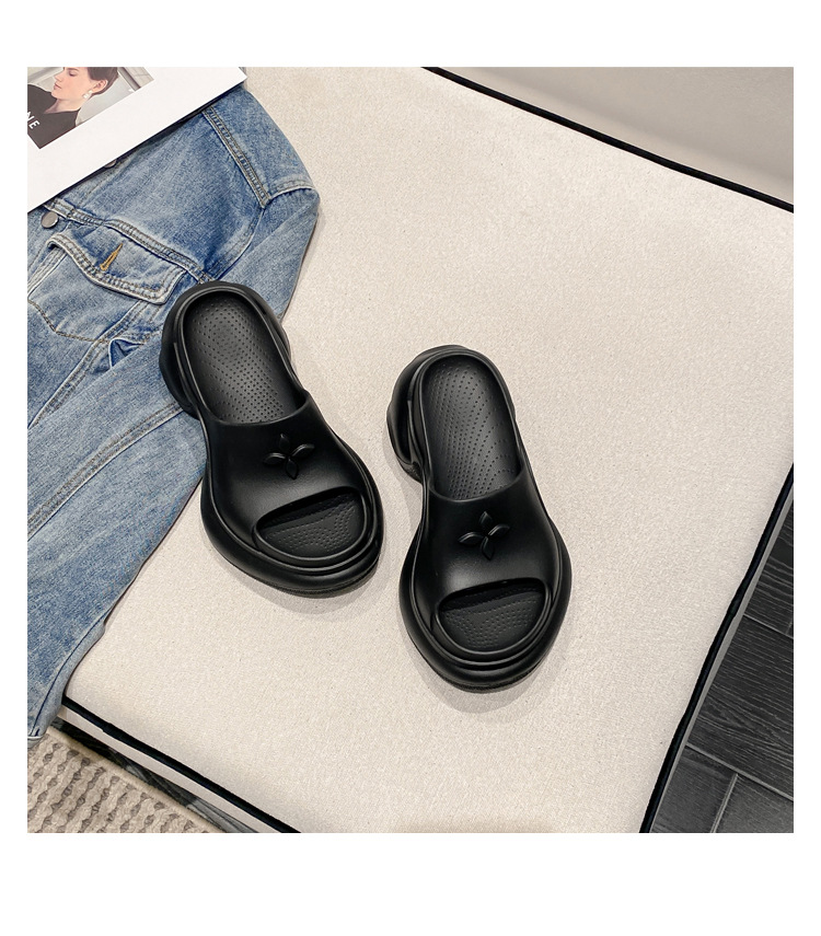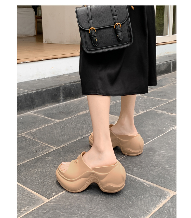 두꺼운 밑창 슬리퍼 여성용 유럽 및 미국 인스타 트렌드 EVA 소프트 밑창 인터넷 유명 스타일 하이힐 일자형 샌들 슬리퍼 해외 직구 편안함스토어 가기