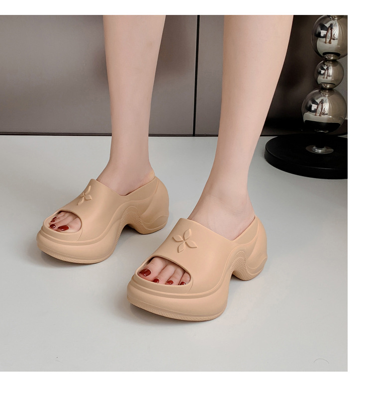 두꺼운 밑창 슬리퍼 여성용 유럽 및 미국 인스타 트렌드 EVA 소프트 밑창 인터넷 유명 스타일 하이힐 일자형 샌들 슬리퍼 해외 직구 편안함