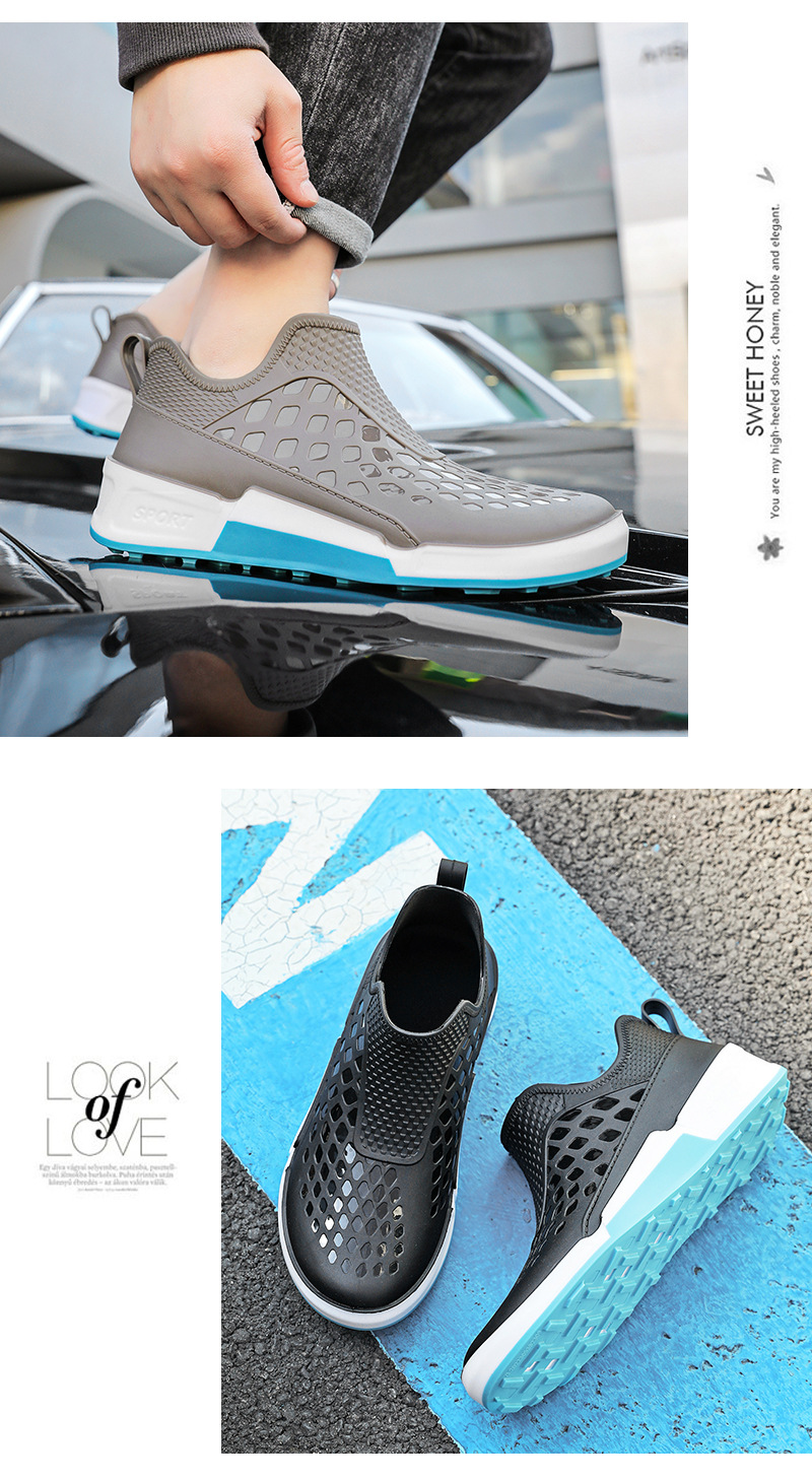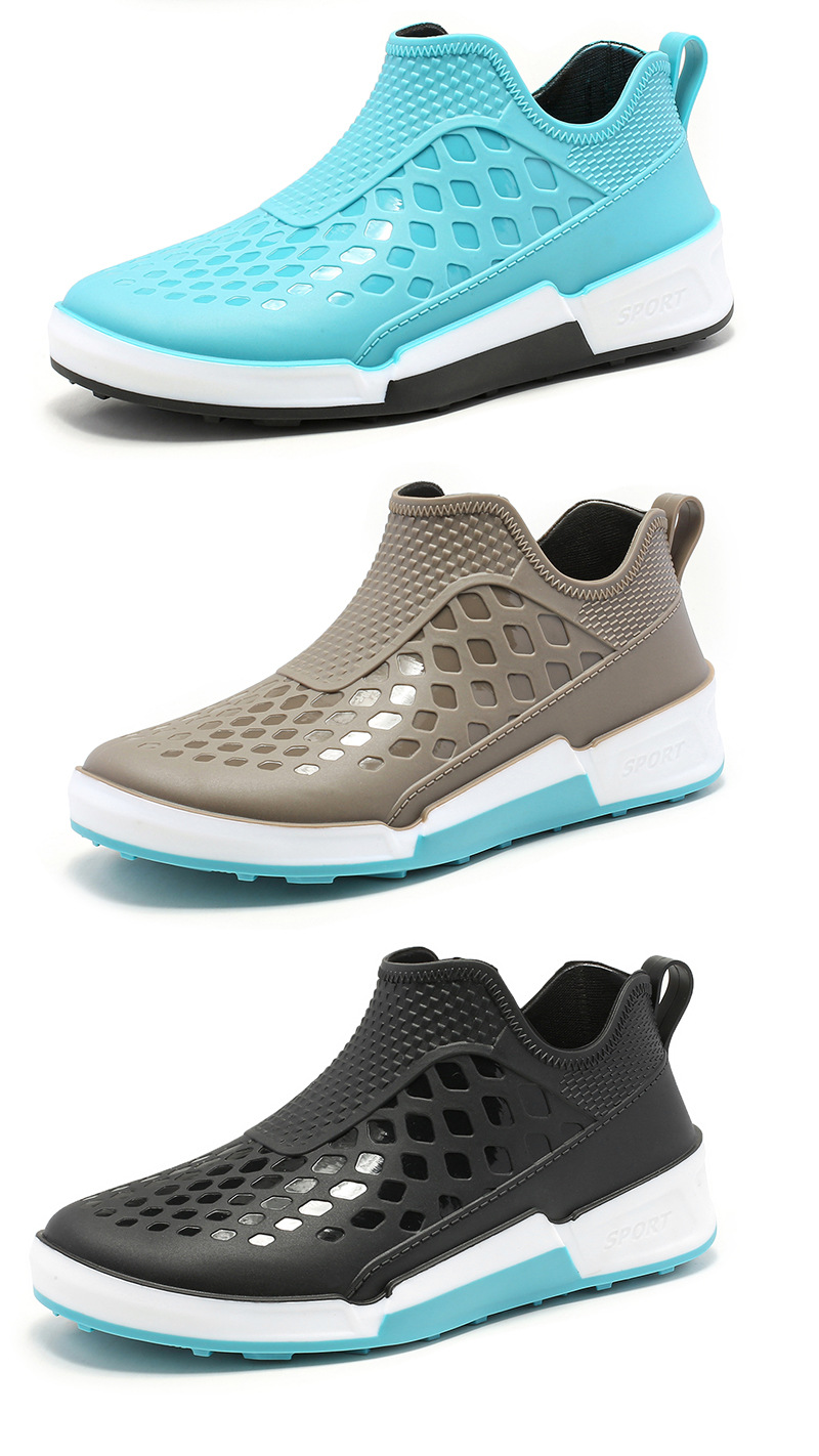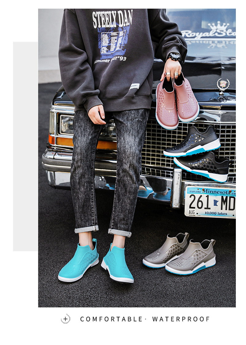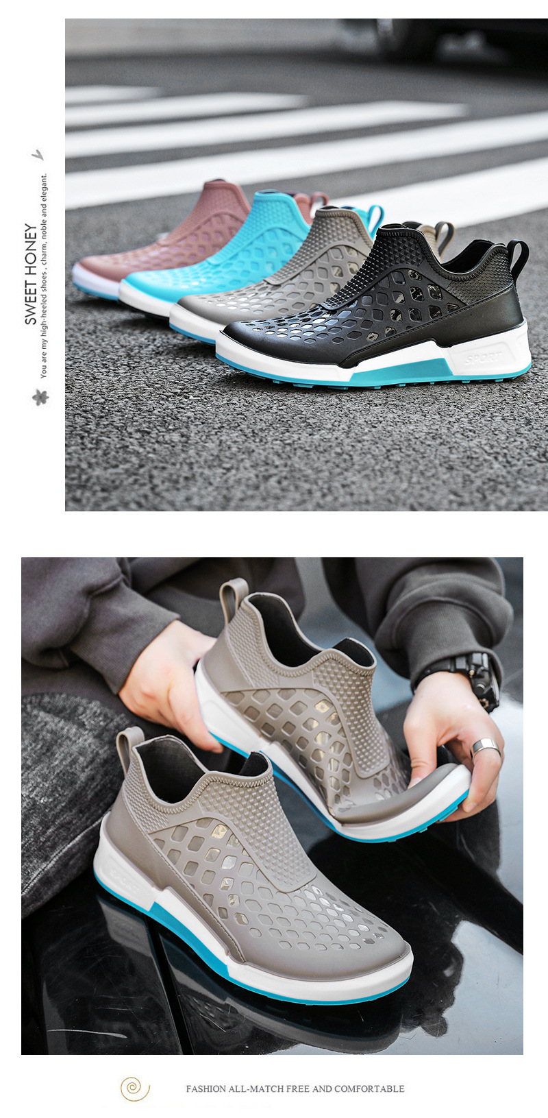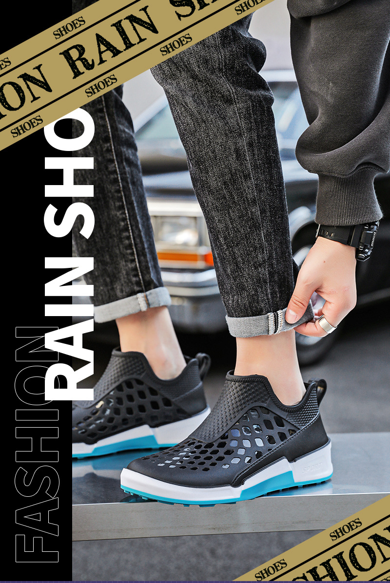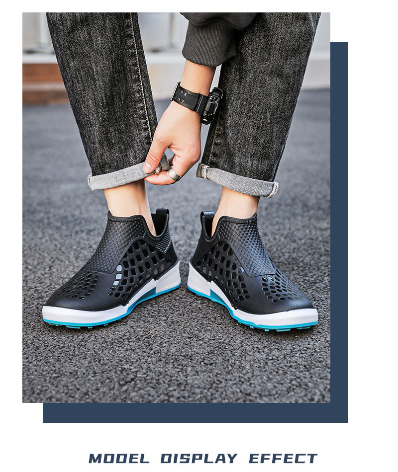 새로운 남성 로우 탑 패션 장화 증가 장화 대비 컬러 방수 신발 사계절 작업 세트 신발 외부 착용 워터 부츠