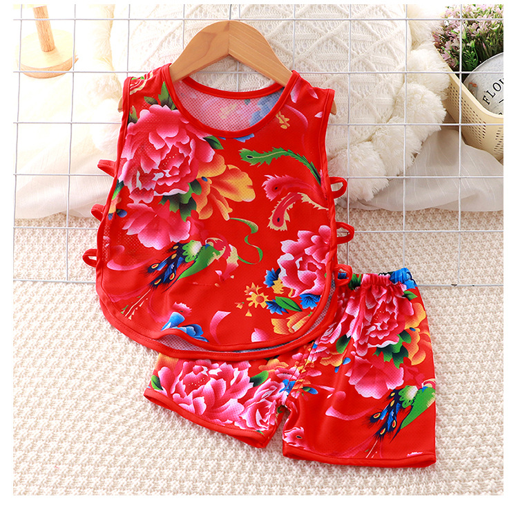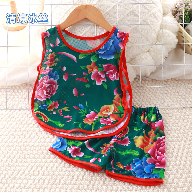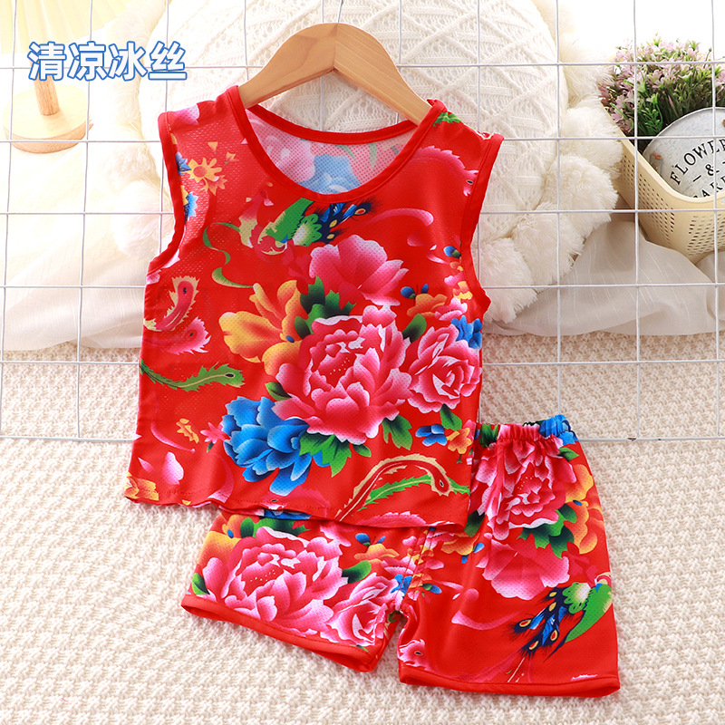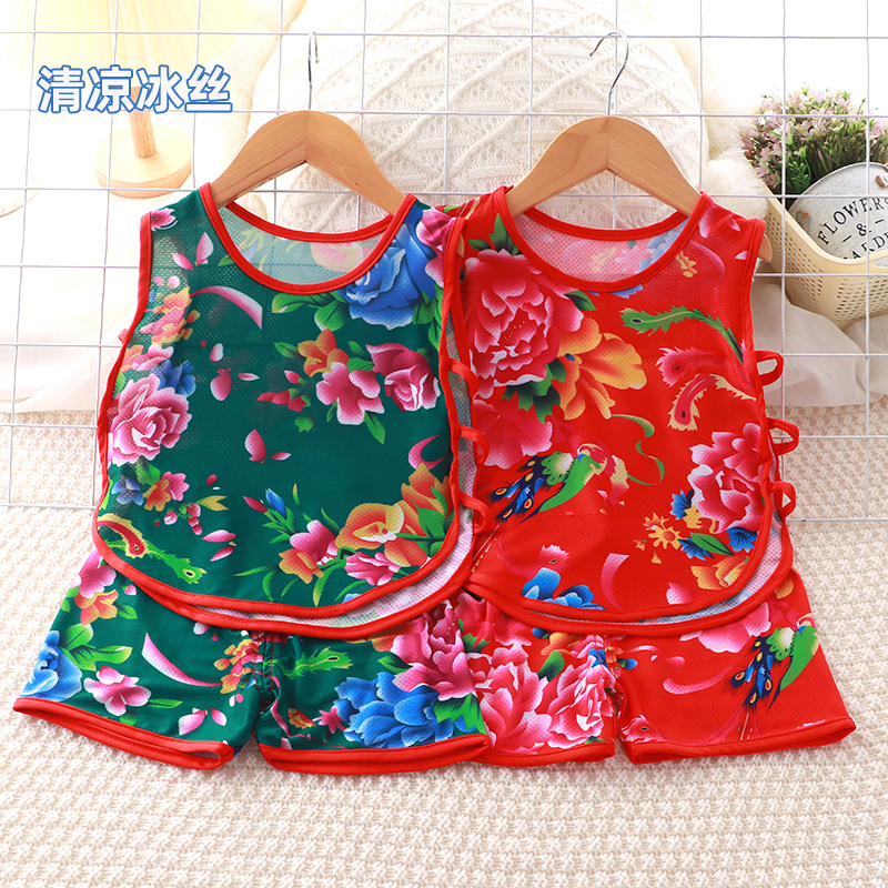 여름 면화 실크 북동쪽 큰 꽃 세트 가정 옷 어린이 피파 조끼 아기 멜빵 반바지스토어 가기