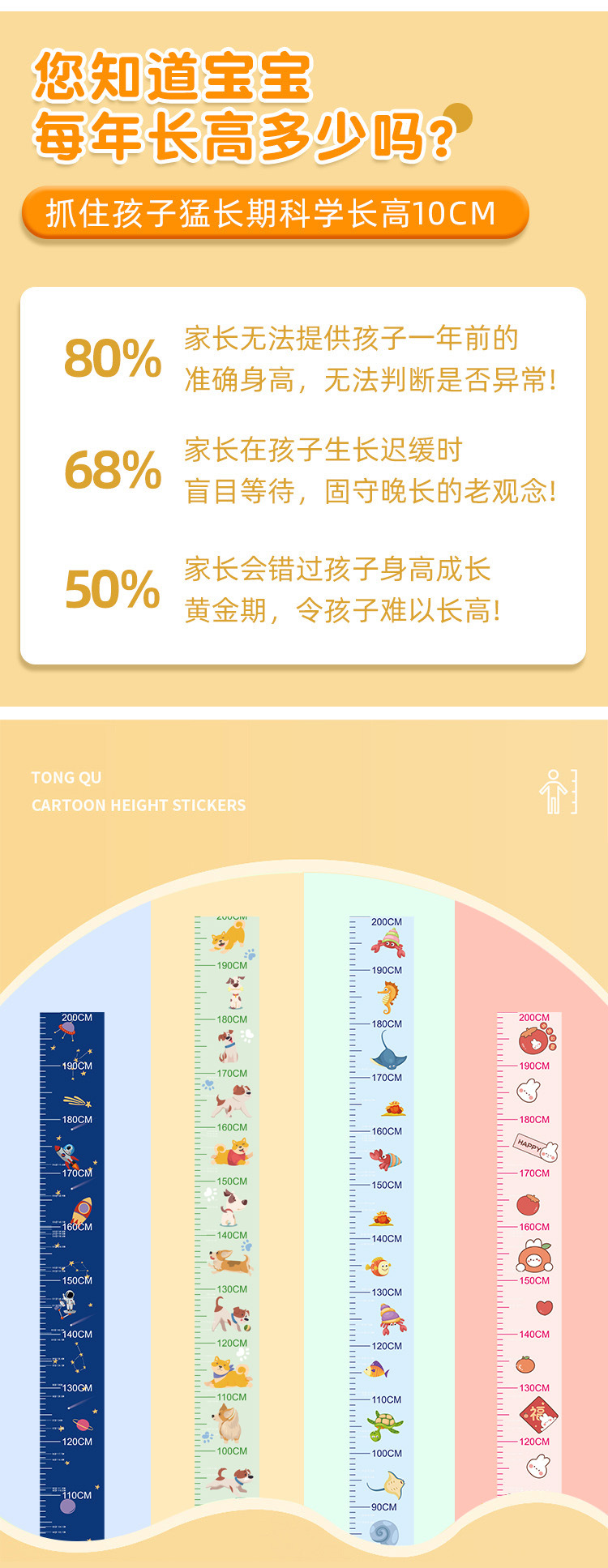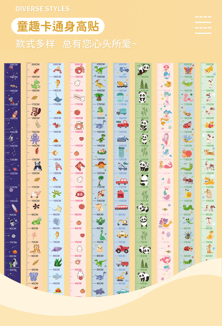 어린이의 정확한 측정 만화 높이 스티커는 벽을 손상시키지 않습니다. 전체 스티커 이동식 스티커 맞춤형 높이 눈금자 스티커스토어 가기