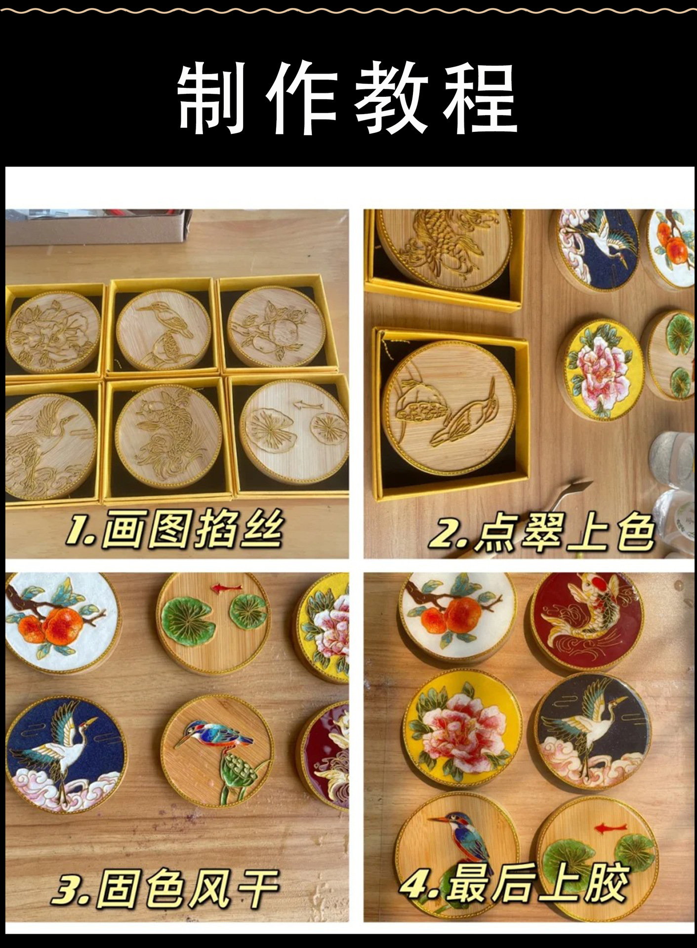 코스터 티 트레이 대나무 홀더 나무 홀더 클루손 클로이 손 클로이 손 에나멜 그림 색 모래 그림 중국 스타일 DIY 소재 도구