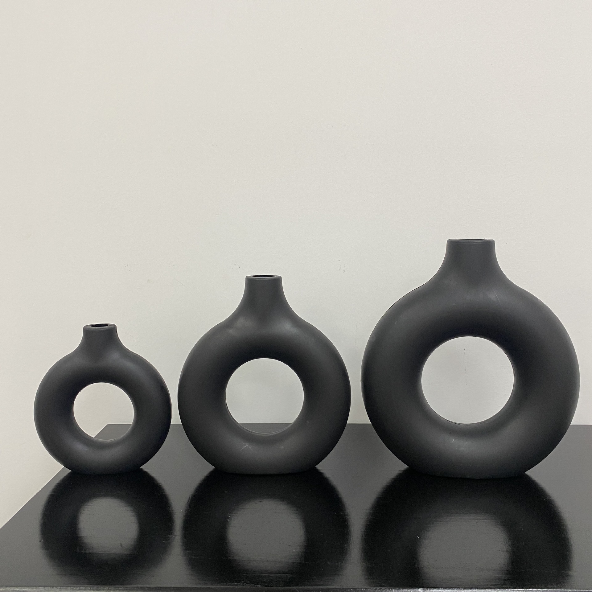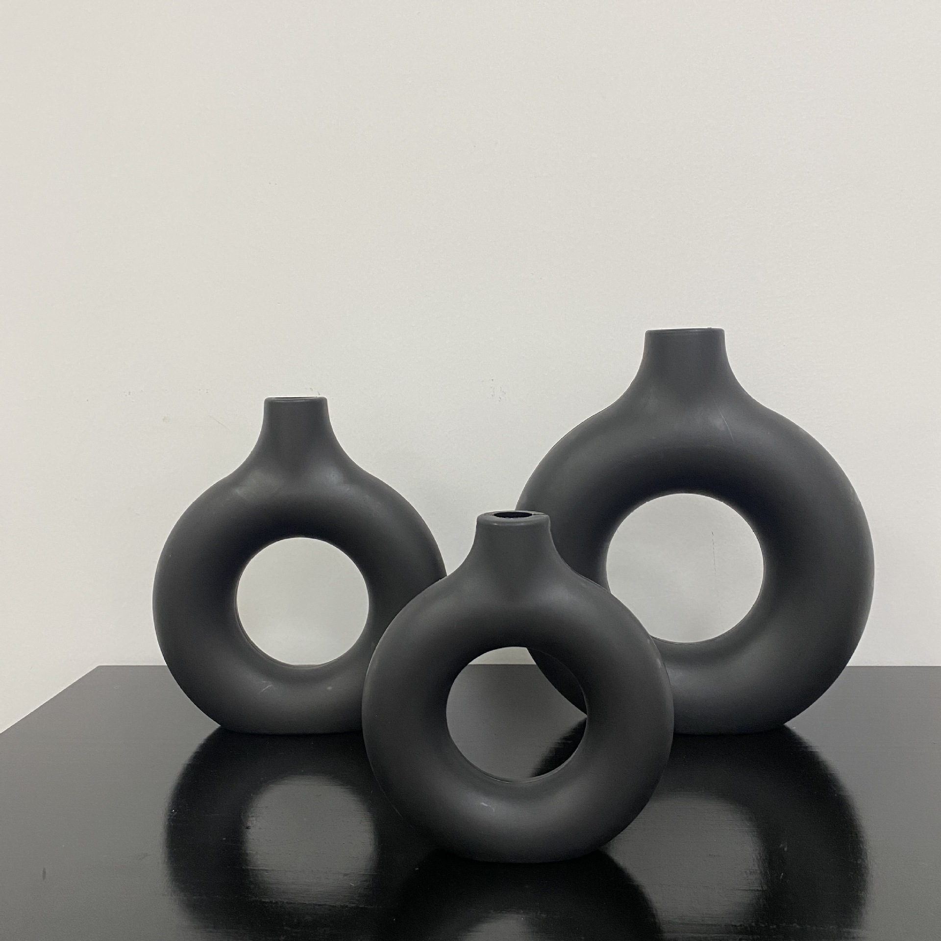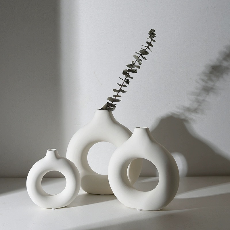 북유럽 스타일의 창조적 인 도넛 모양 플라스틱 꽃병 홈 거실 장식 식탁 장식품 원형 꽃병