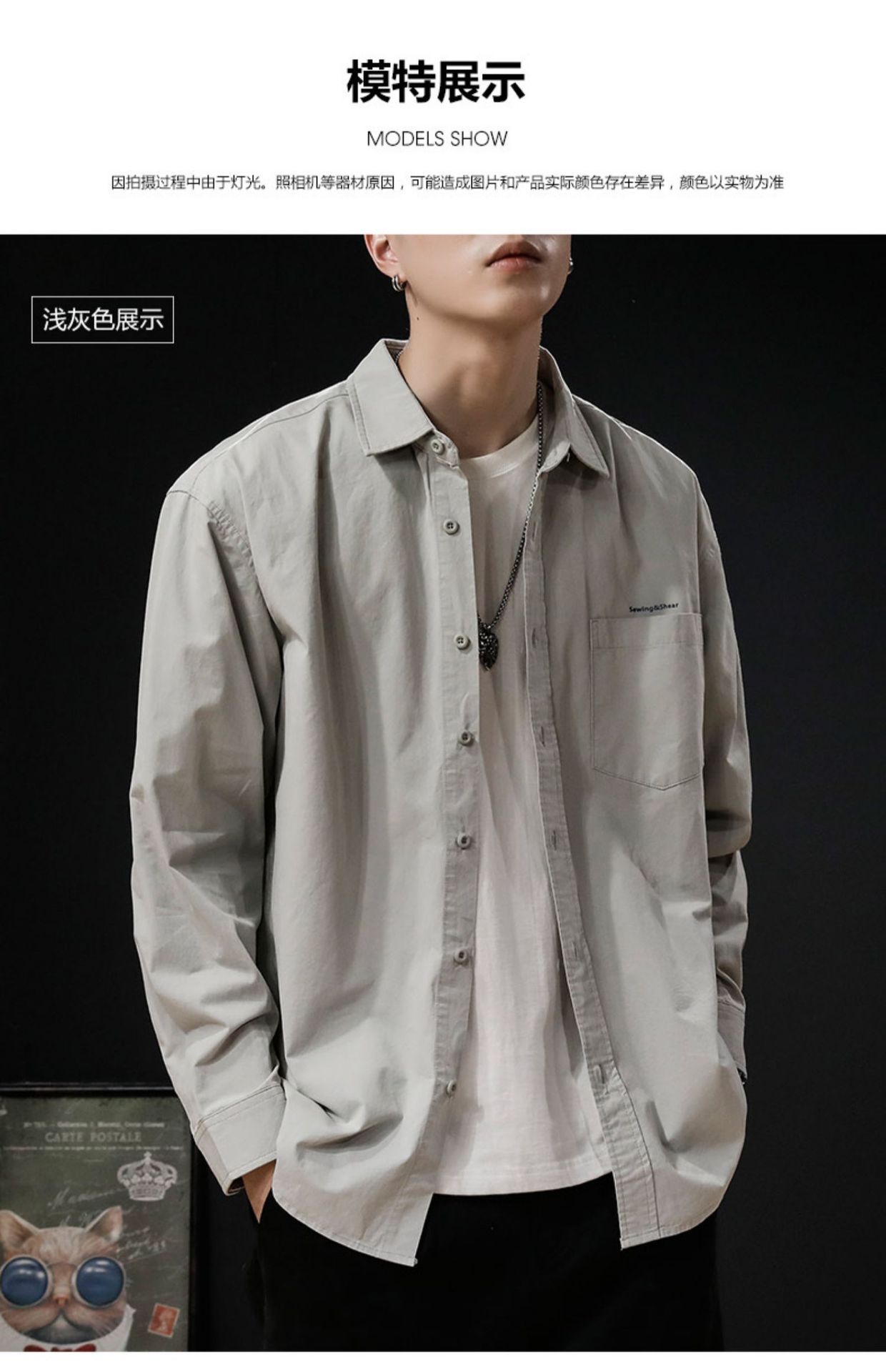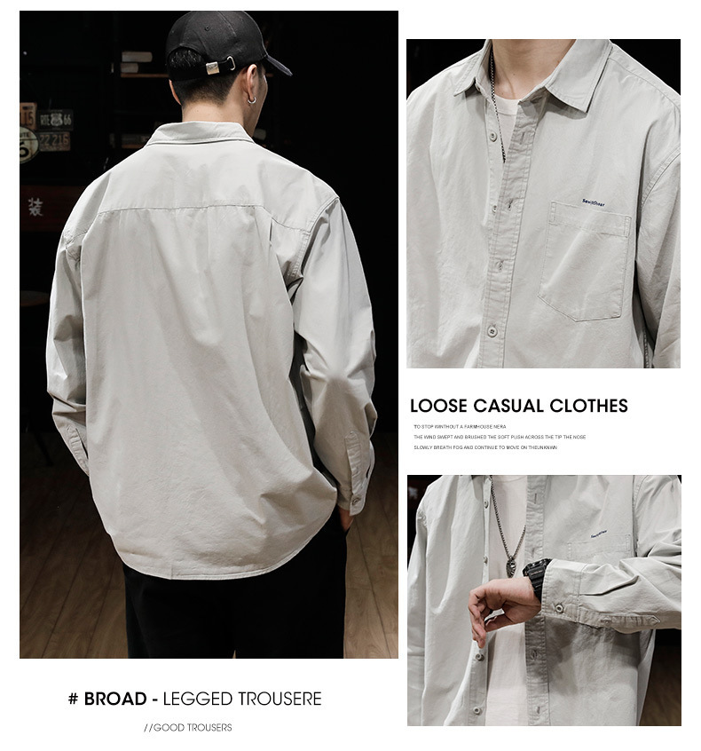 봄과 가을 일본 스타일 레트로 긴팔 셔츠 남성용 재킷 트렌디 브랜드 Ins 느슨한 플러스 사이즈 봄 Frock 캐주얼 셔츠 트렌디스토어 가기