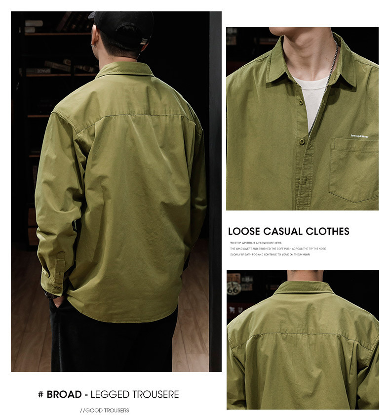 봄과 가을 일본 스타일 레트로 긴팔 셔츠 남성용 재킷 트렌디 브랜드 Ins 느슨한 플러스 사이즈 봄 Frock 캐주얼 셔츠 트렌디