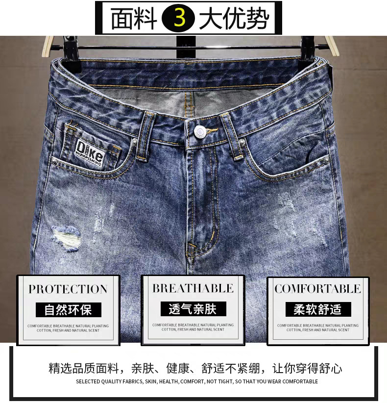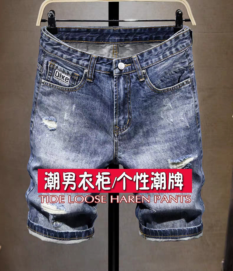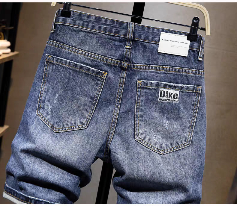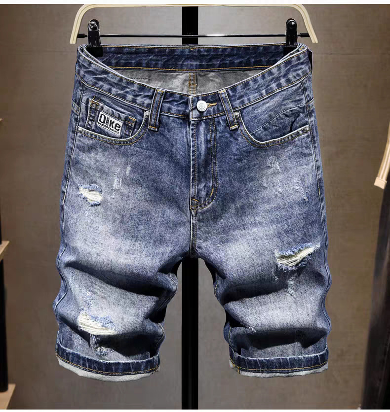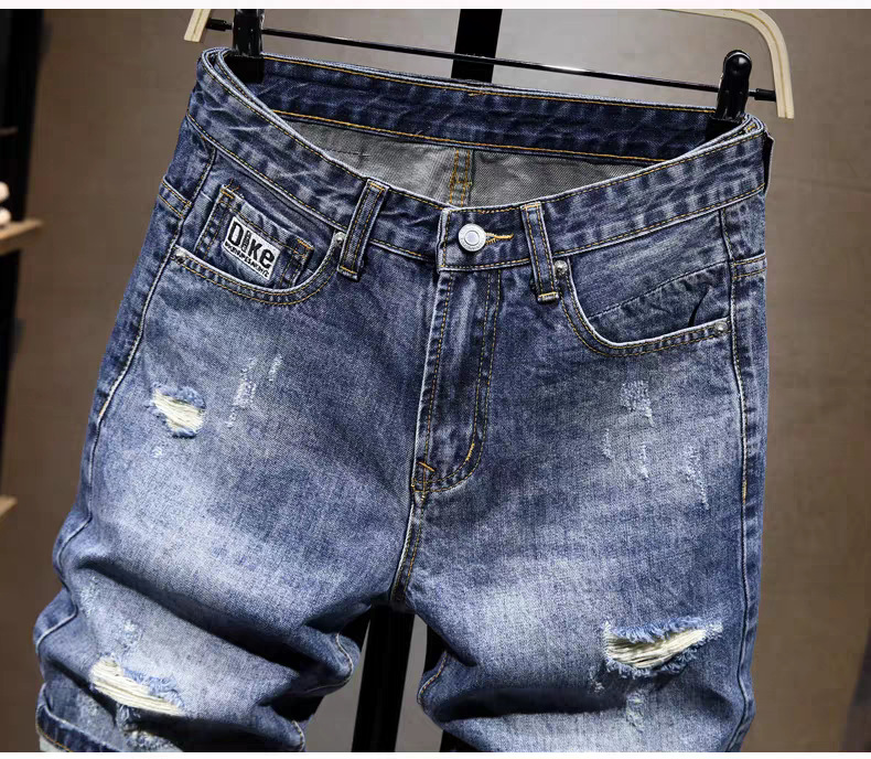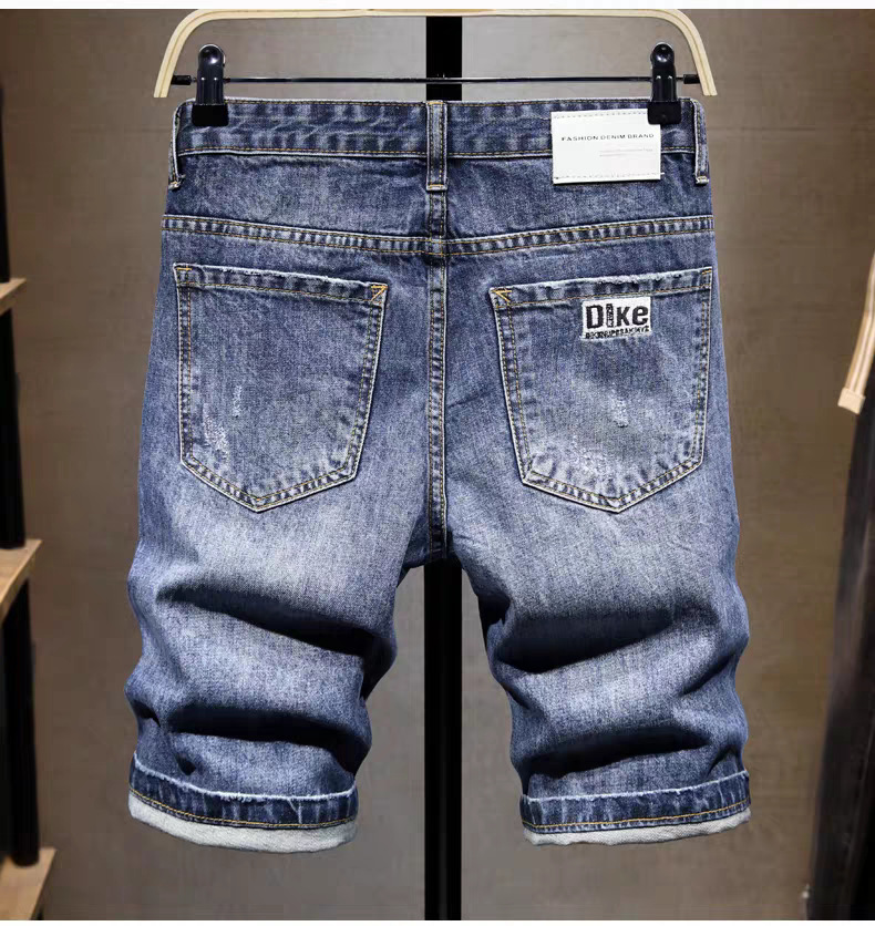 스트레치 데님 반바지 남자 여름 새로운 슬림 핏 작은 스트레이트 바지 미국식 하이 스트리트 올 매치 바지 2024 패션 트렌디스토어 가기
