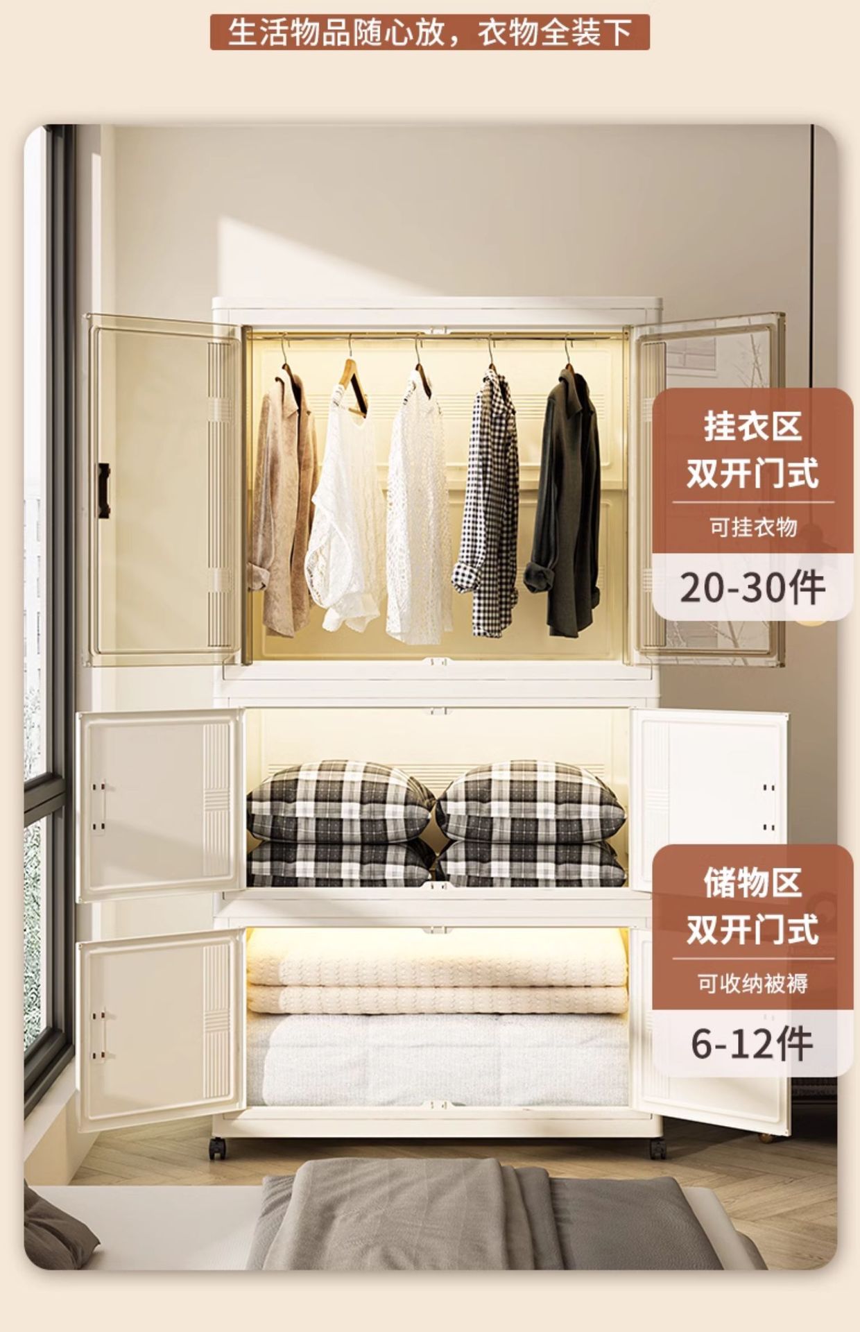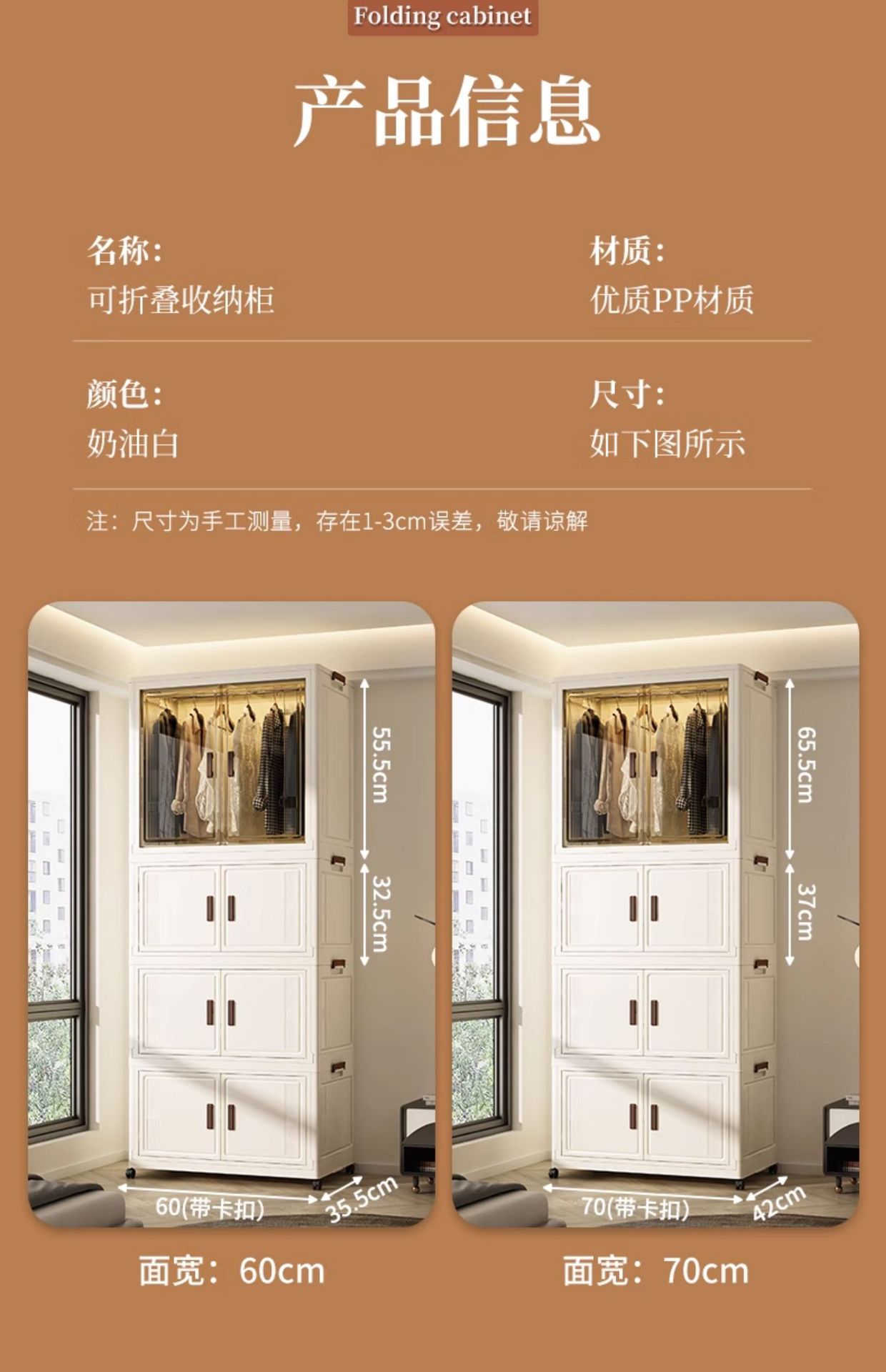 • ☆ ★ 65cm 폭/177cm 높이 [2단 옷장 + 단색 1단 - 접이식 옷장, 옷걸이 20개 증정] ☆ ★
