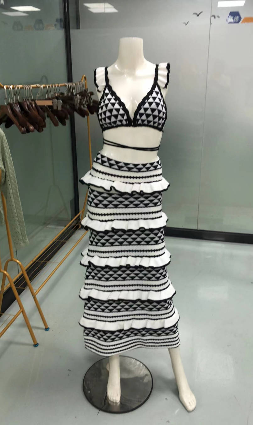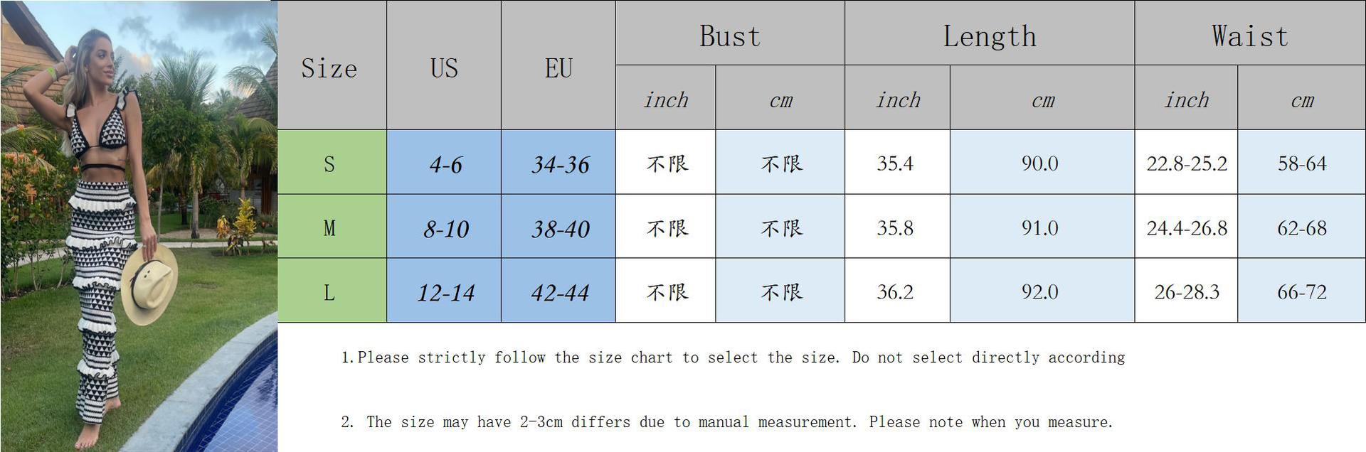 2024 스트라이프 러플 비키니 조끼 Halter Top Beach 긴 니트 스커트 니트 세트 여성