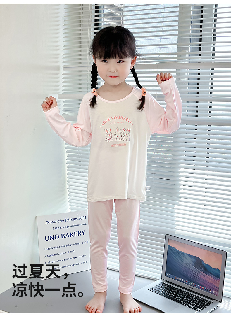 잠옷 소녀 여름 얇은 모달 어린이 가정 옷 세트 봄과 가을 신소녀 아기 에어컨 옷 클래스 A스토어 가기