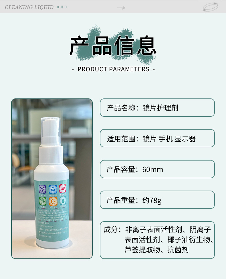 안경 청소 액체 휴대용 60ml 렌즈 스프레이 안경 휴대 전화 컴퓨터 화면 클리너 눈 물스토어 가기